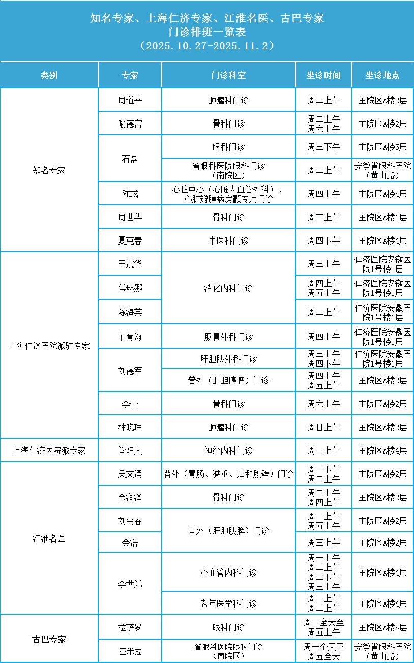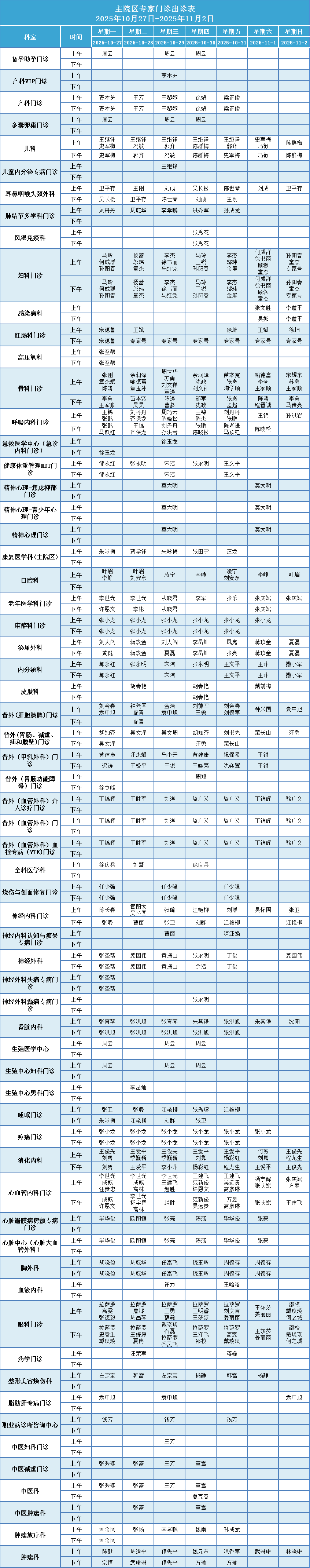 (2)以上出诊可能会有变化,以实际专家出诊为准。