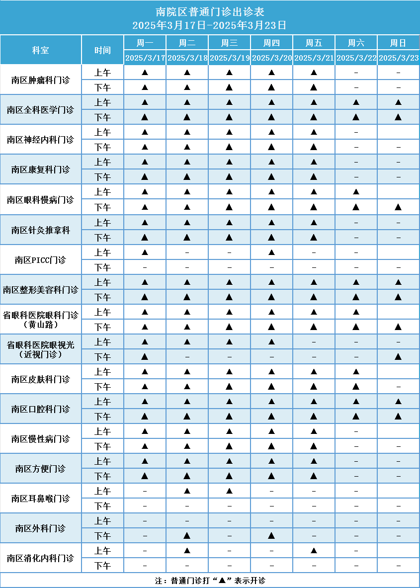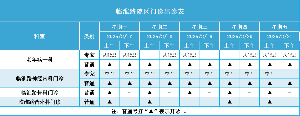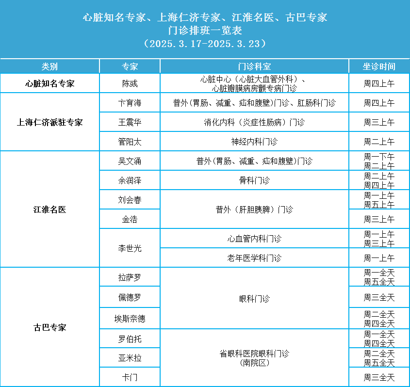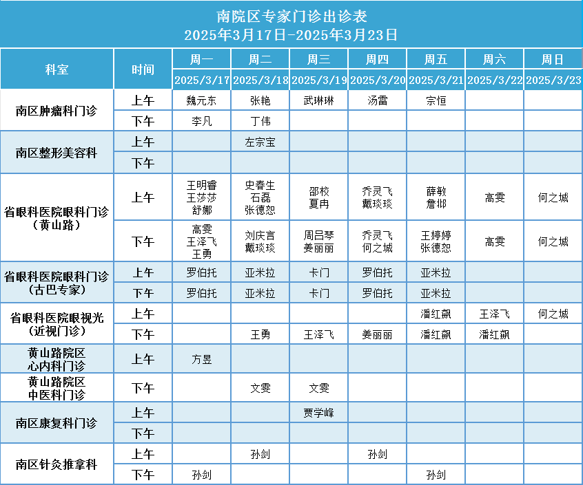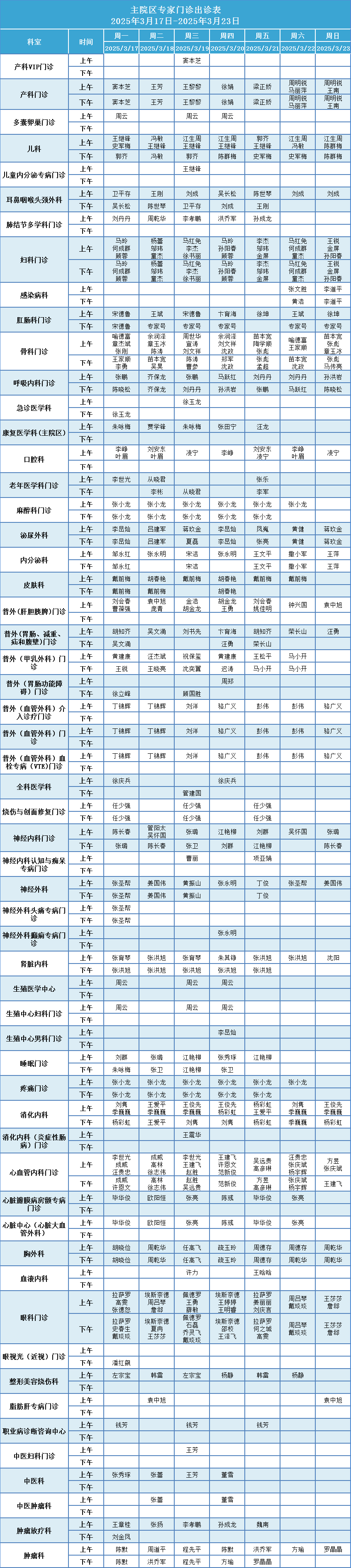 安徽省第二人民医院门诊一周排班表(2025年3月17日-2025年3月23日)