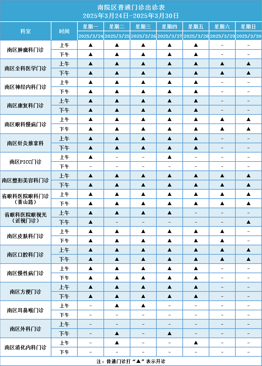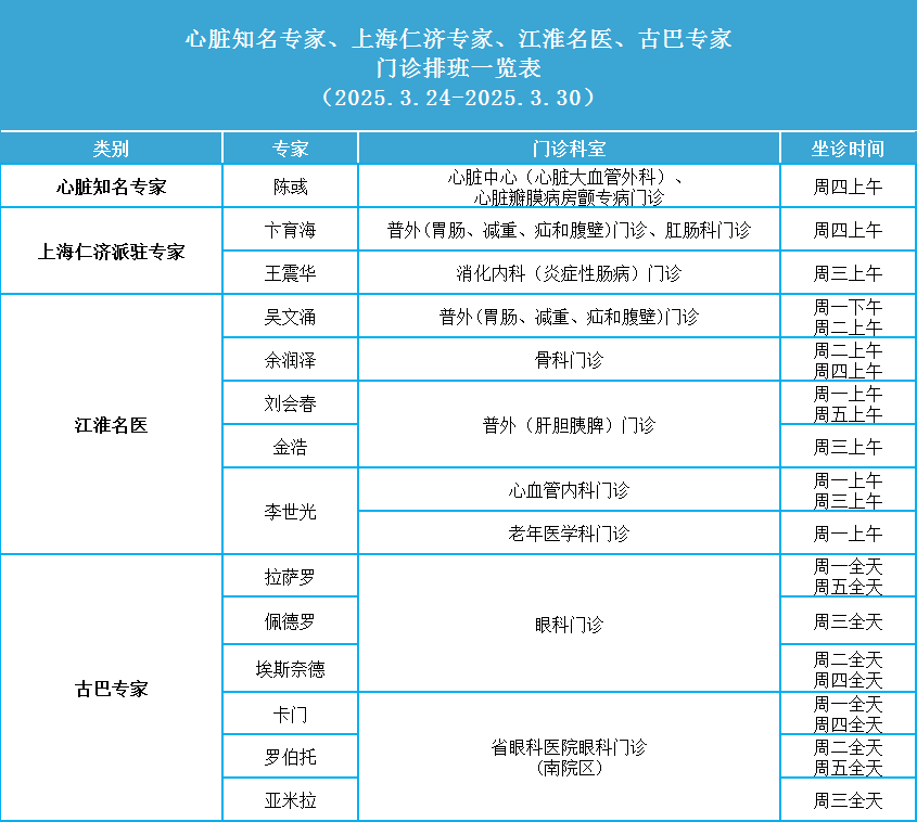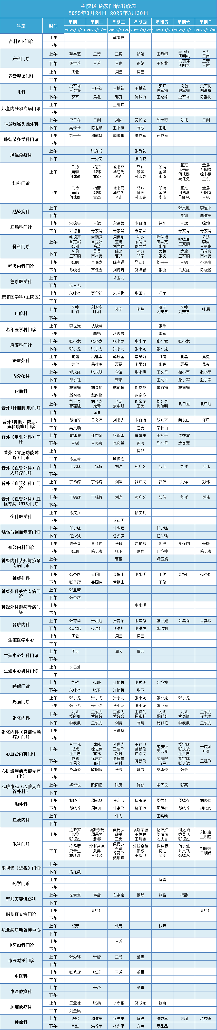 安徽省第二人民医院门诊一周排班表(2025年3月24日-2025年3月30日)