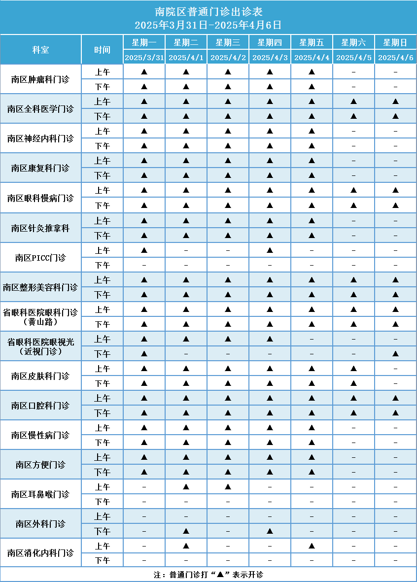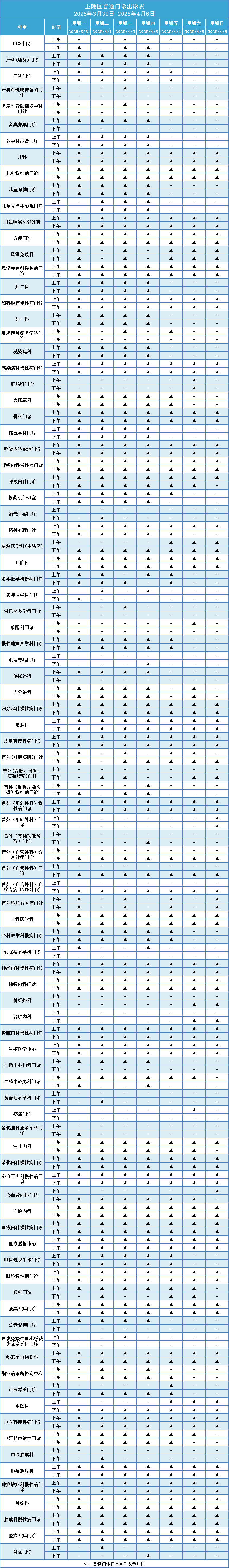 (1)普通门诊打“▲”表示开诊。