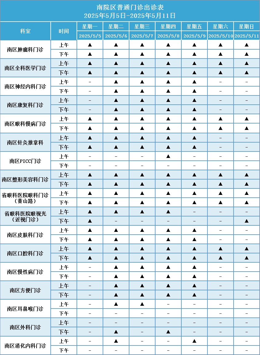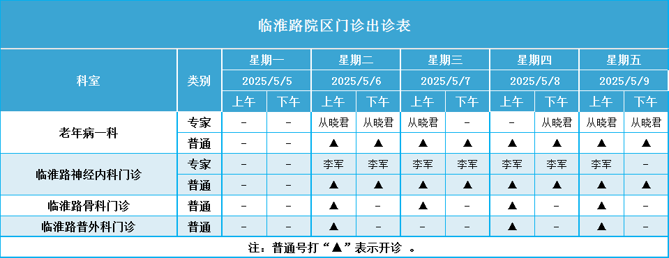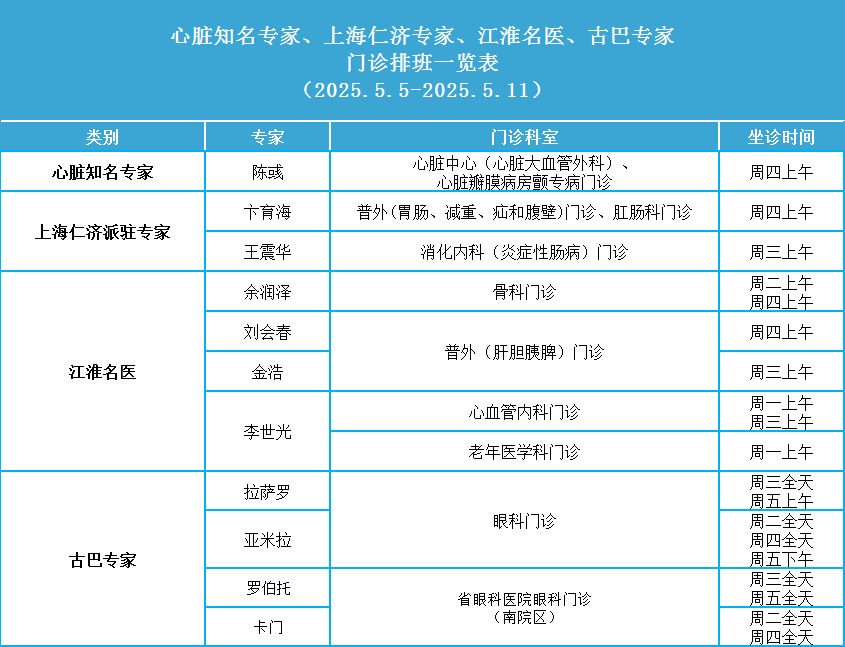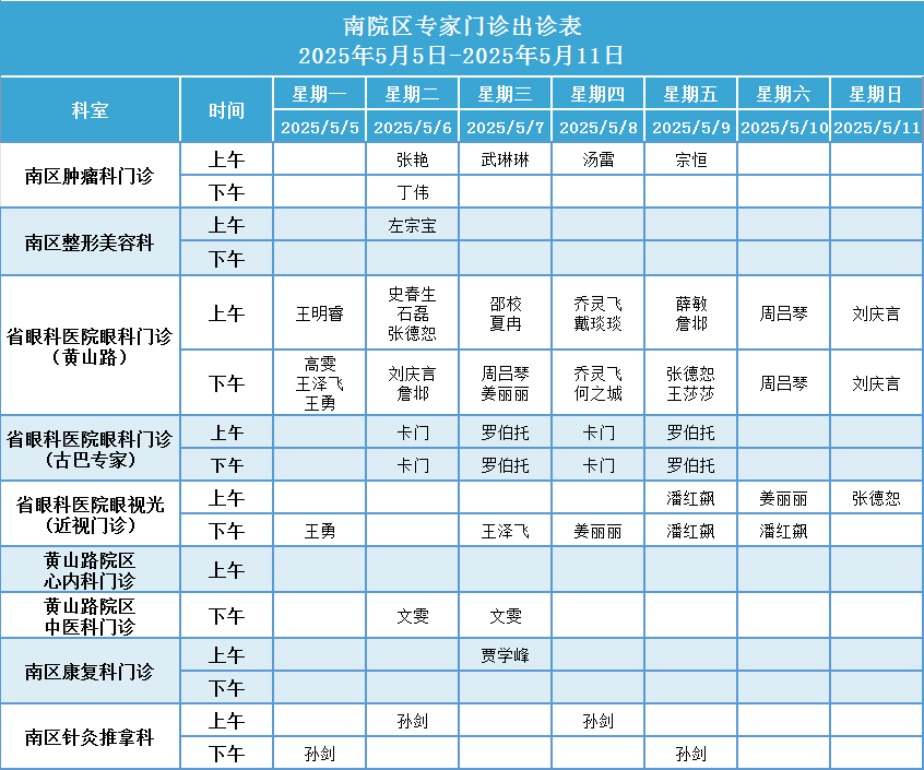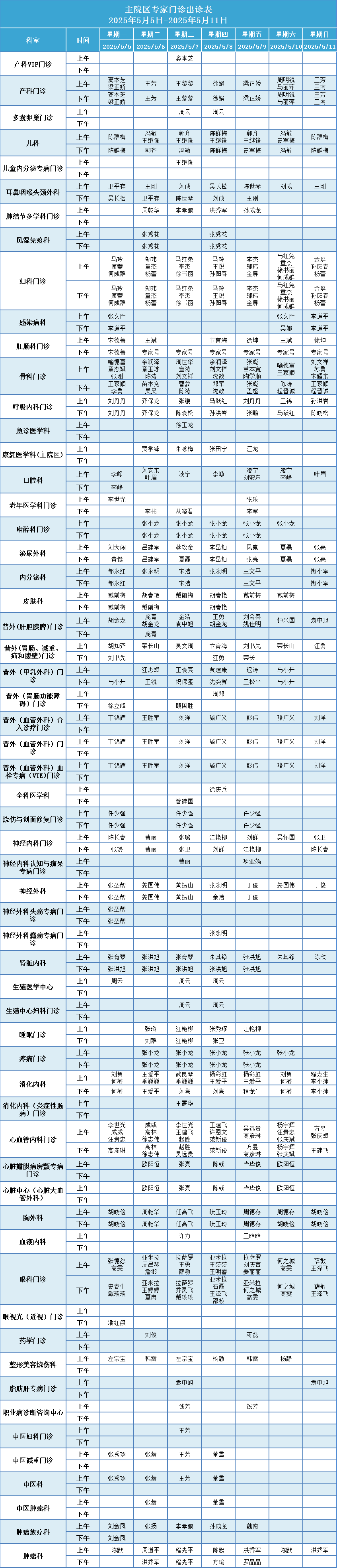 安徽省第二人民医院门诊一周排班表(2025年5月5号—2025年5月11号)