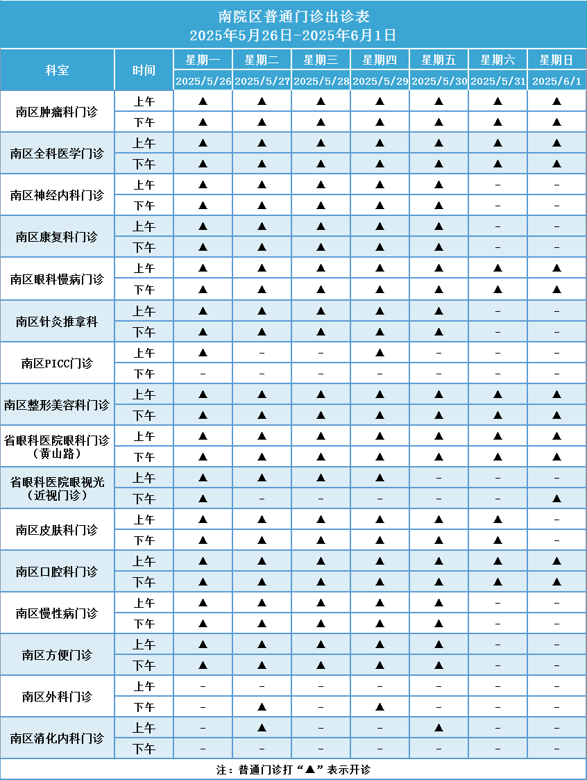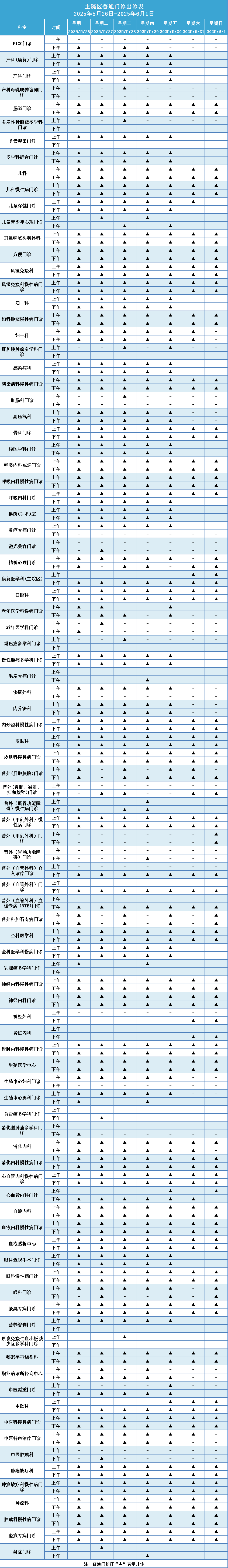 (1)普通门诊打“▲”表示开诊。