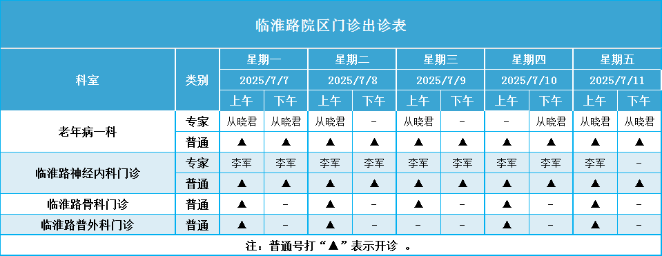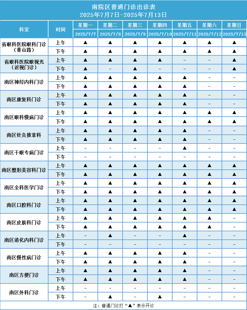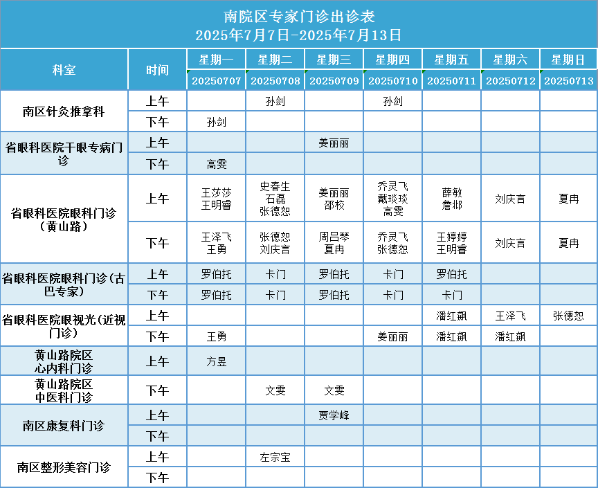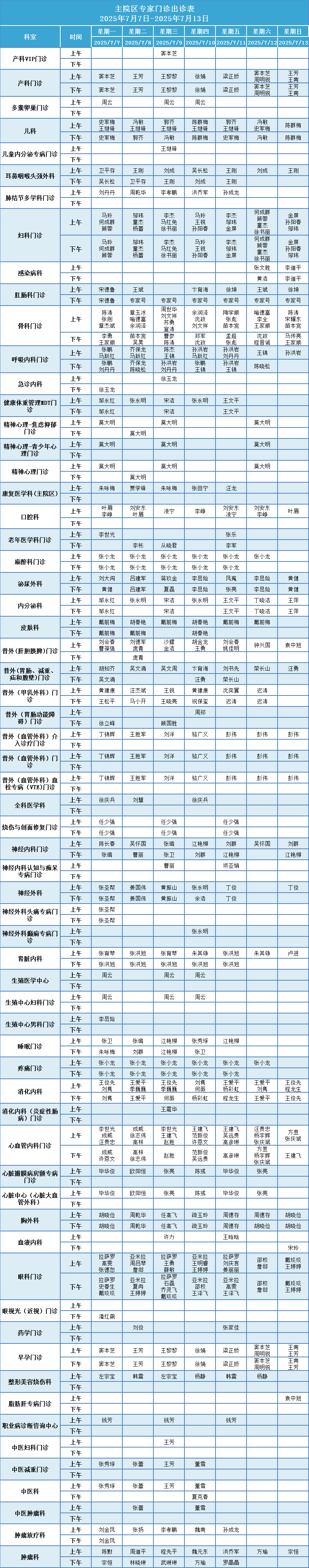 安徽省第二人民医院门诊一周排班表(2025年7月7日-2025年7月13日)