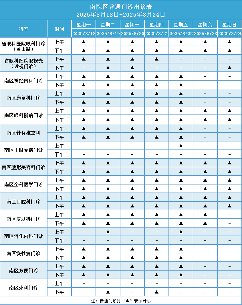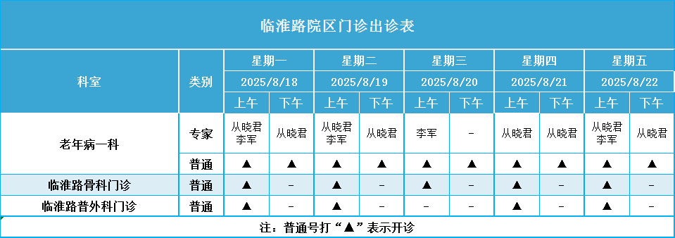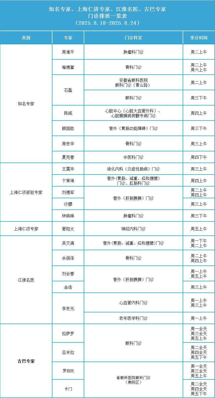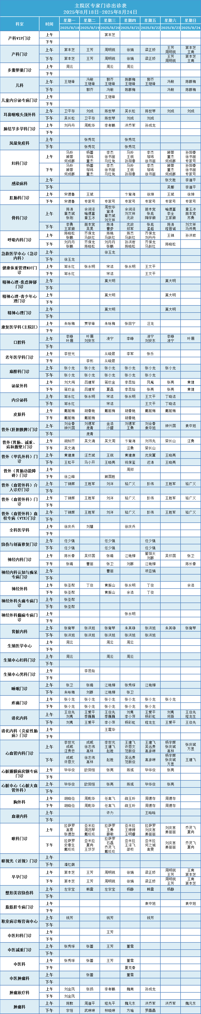 安徽省第二人民医院门诊一周排班表(2025年8月18日-2025年8月24日)