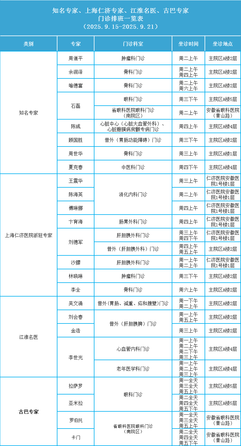 (3)仁济专家实际出诊时间可通过医院微信公众号“安徽省第二人民医院”就医服务栏预约挂号。