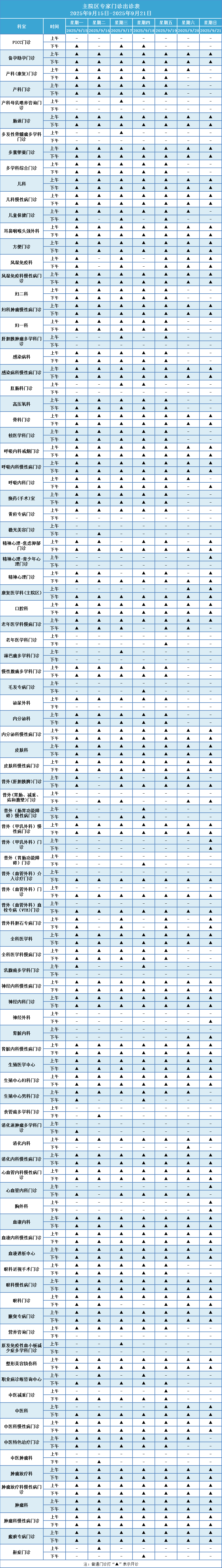 (1)普通门诊打“▲”表示开诊。