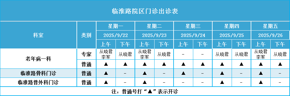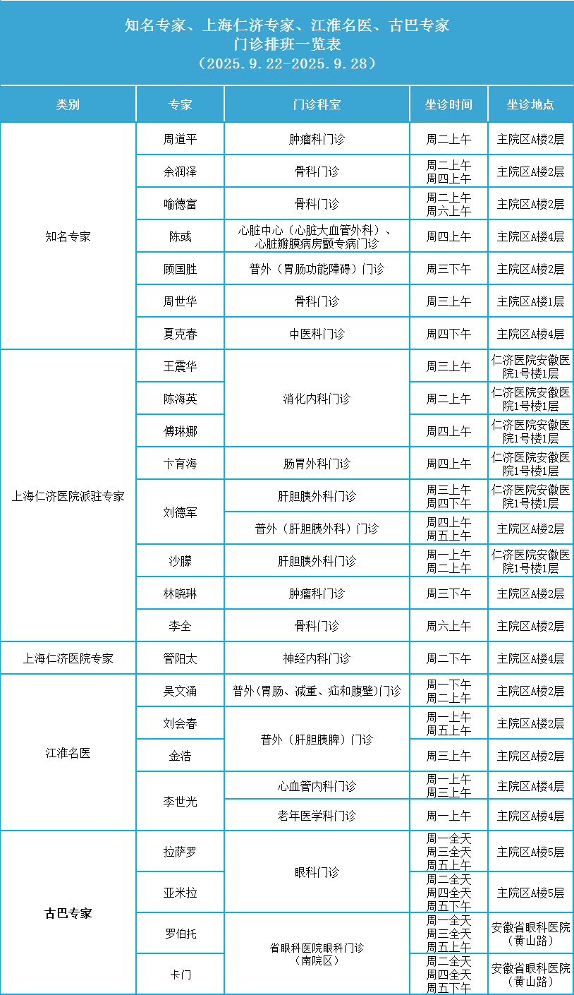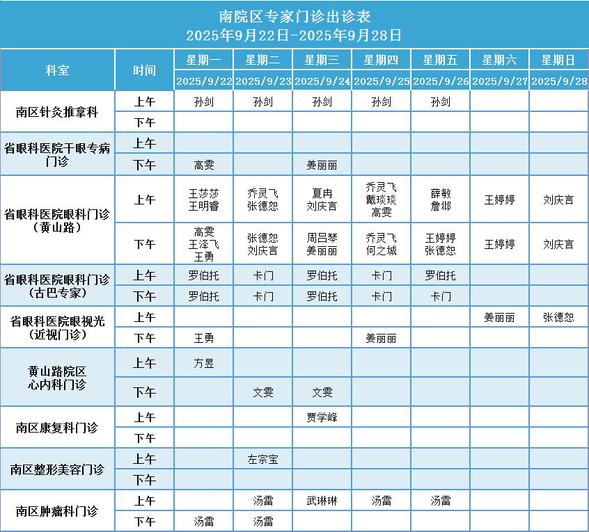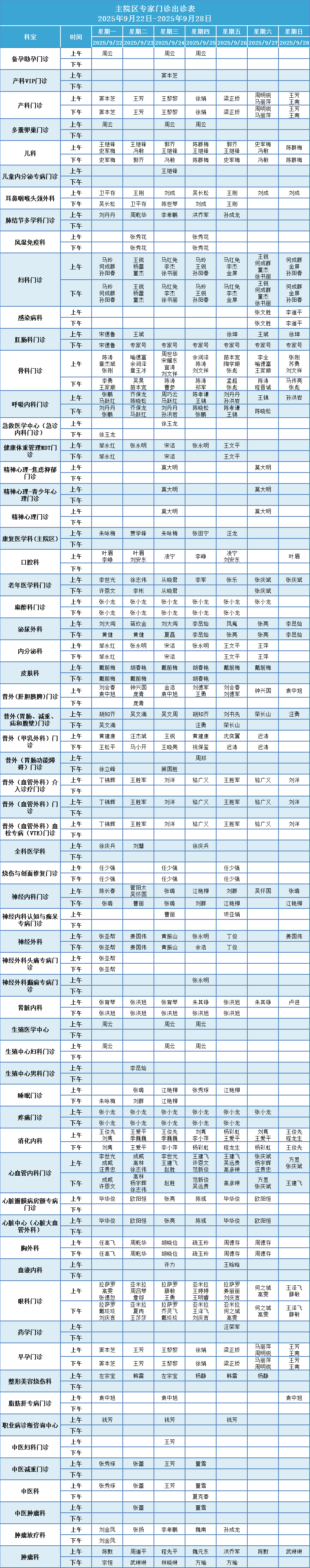 安徽省第二人民医院门诊一周排班表(2025年9月22日-2025年9月28日)