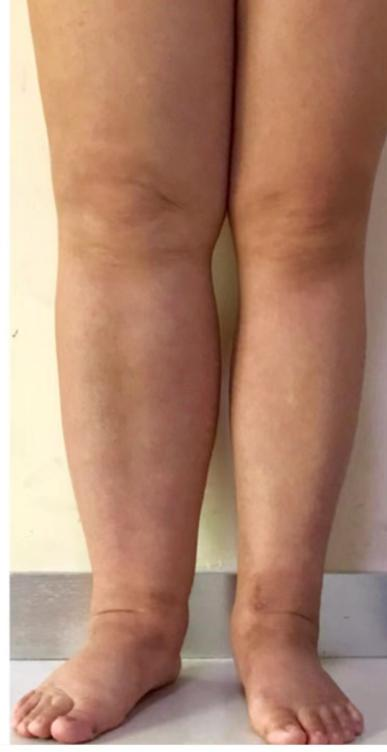 下肢淋巴水肿可表现为患侧肢体肿胀,后期皮肤增厚、粗糙,与大象皮肤一样坚硬,俗称“象皮肿”。由于下肢肿胀,患者易出现活动后乏力、活动受限。