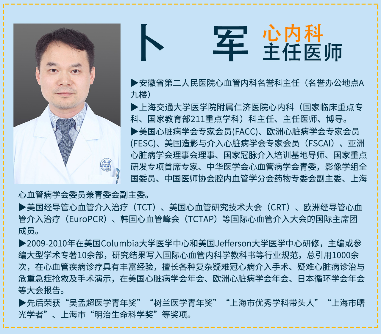 2023年3月11日起,上海仁济医院心血管内科专家每2周来院坐诊一次。挂号方式:周六上午挂“心血管内科”-“心血管内科(上海仁济专家)专家号”就诊。(专家实际出诊情况,请通过医院微信公众号掌上医院门诊挂号-预约挂号-心血管内科门诊进行查询,或电话联系心血管内科),联系电话0551-64272920。