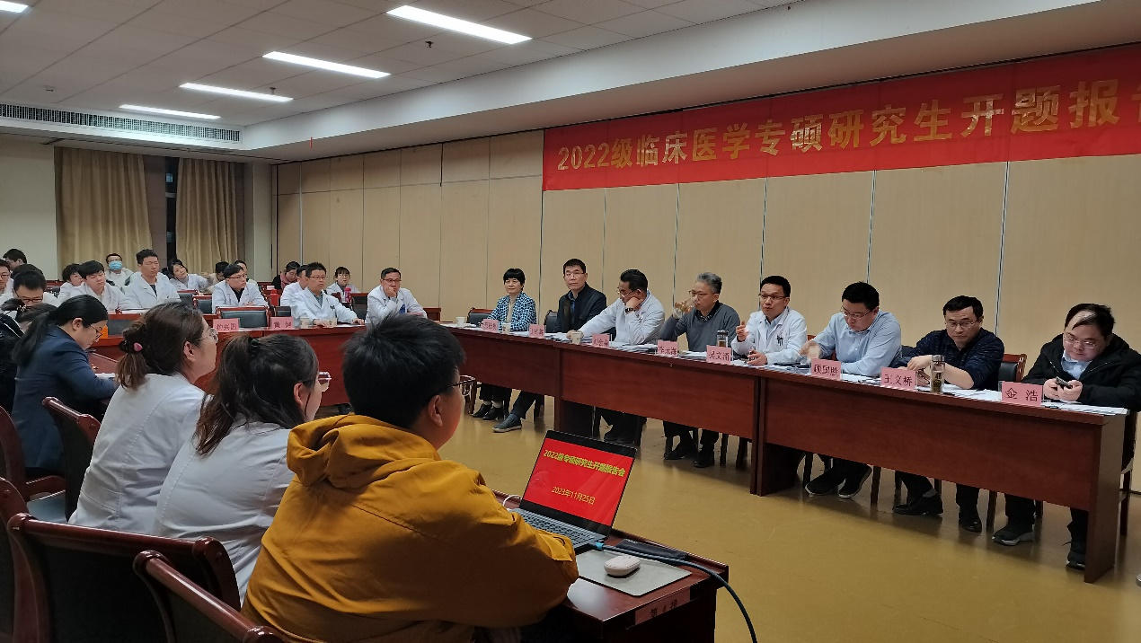 11月25日、26日,医院分批次对蚌医42名专硕研究生集中组织召开开题报告会,医院党委副书记、院长吴文涌担任评审专家并作重要讲话;副院长石磊,院长助理、教育处主任邢桂枚和各教研室主任、住培督导专家、住培专业基地主任及部分导师等担任评审专家,报告会还特别邀请了安医大一附院唐海沁教授、李元海教授担任院外评审专家,医院蚌医专硕研究生导师及2022级、2023级专硕研究生参加了开题报告会。