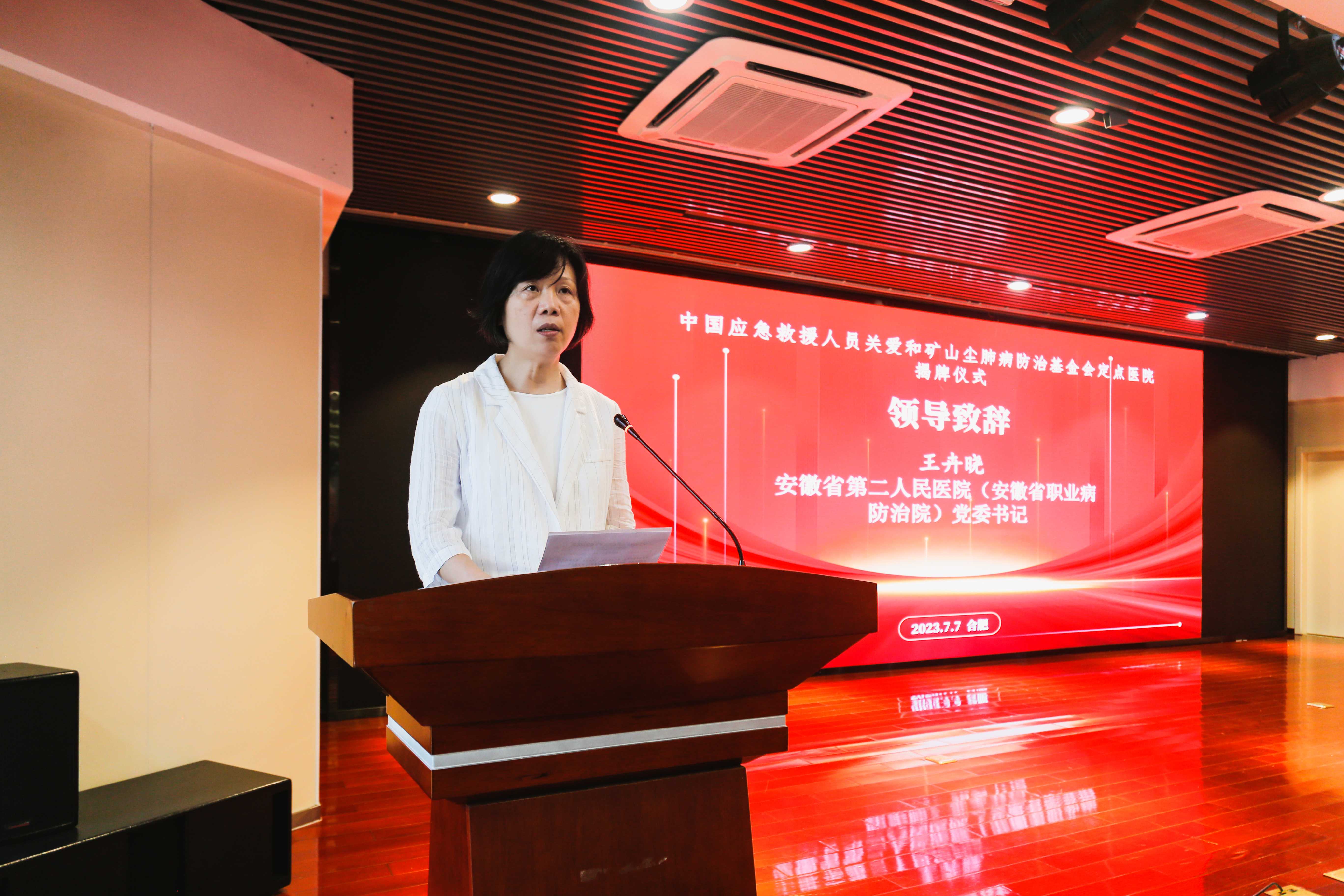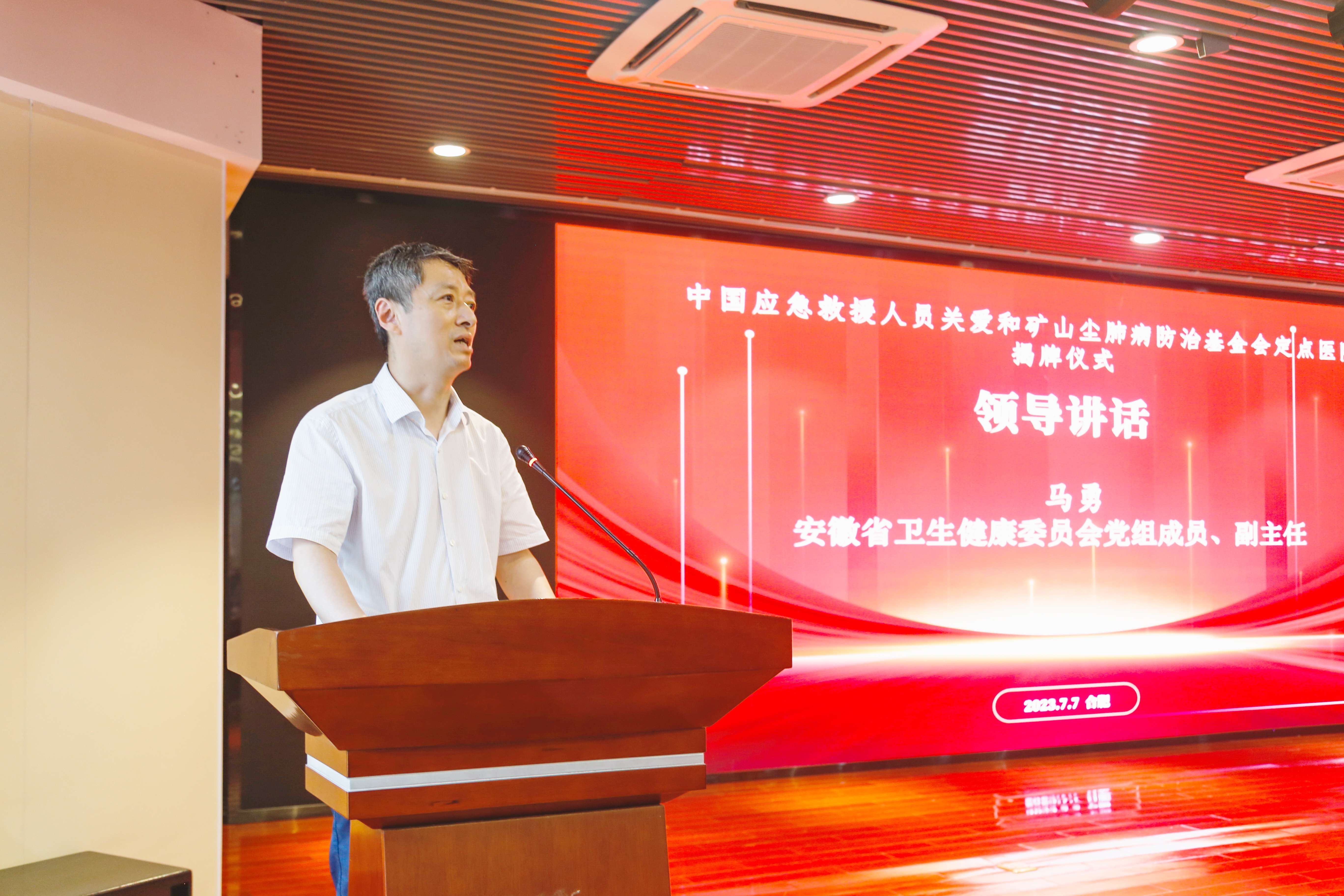 7月7日上午,中国应急救援人员关爱和矿山尘肺病防治基金会(原中国煤矿尘肺病防治基金会)定点医院揭牌仪式在我院C楼5层大会议室成功举行。中国应急救援人员关爱和矿山尘肺病防治基金会理事长黄毅、副理事长兼秘书长杨庆生,安徽省卫生健康委党组成员、副主任马勇,安徽理工大学党委常委、副校长张平松等领导与专家出席并致辞。仪式由院党委副书记、院长吴文涌主持。在院领导班子成员及相关科室负责人参加。