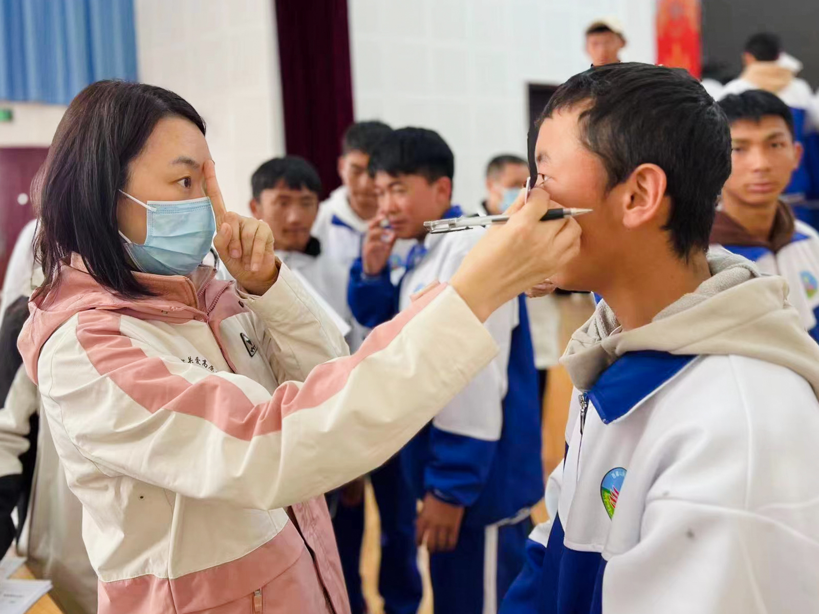 让心灵的窗户像蓝天一样明亮,让幸福的生活像格桑花一样美好。在第28个全国爱眼日到来之际,受安徽省第八批援藏工作队、山南市卫健委、山南市教育局邀请,安徽省第二人民医院(安徽省眼科医院)联手欧普康视科技股份有限公司及合肥慧视眼科医院共同参加了“加强近视防控,关爱高原学子”公益活动。活动期间为西藏自治区山南市以及下辖浪卡子县、贡嘎县、错那县、措美县约6700名中小学生进行免费视力检测,并为屈光不正学生赠送预计4000副眼镜。医院派出由眼科主任医师、副院长石磊、工会主席于琳娜带队的两批共23名专家团队参加此次公益活动。省眼科医院的史春生和王勇两名科主任在活动中担任主诊专家。安徽省卫健委医政医管处副处长彭玉池、安徽省二院党委书记王卉晓赴山南参加公益活动,并亲切慰问援藏医护人员。