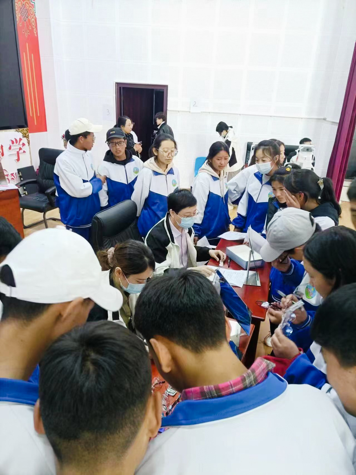 医院眼科专家们利用电脑验光仪、灯箱视力表、试戴架、检影镜等数十种专业检查设备,为学生们进行视力筛查、建立屈光发育档案,排查视力异常的学生,对检查结果做出初步诊断和建议,对有近视风险的学生进行早期预警,对已经近视的学生提出有针对性的近视防控指导,为屈光不正的学生免费验配适合度数的框架眼镜。专家们开展工作的学校,平均海拔4000左右,最高海拔的浪卡子县4500米,大家有的脸上脱皮,个个嘴唇焦躁,加上路途奔波,几乎每个人都有高原反应。可是到了学校,看到了可爱的孩子,每个人又都忘我地投入到了工作中。