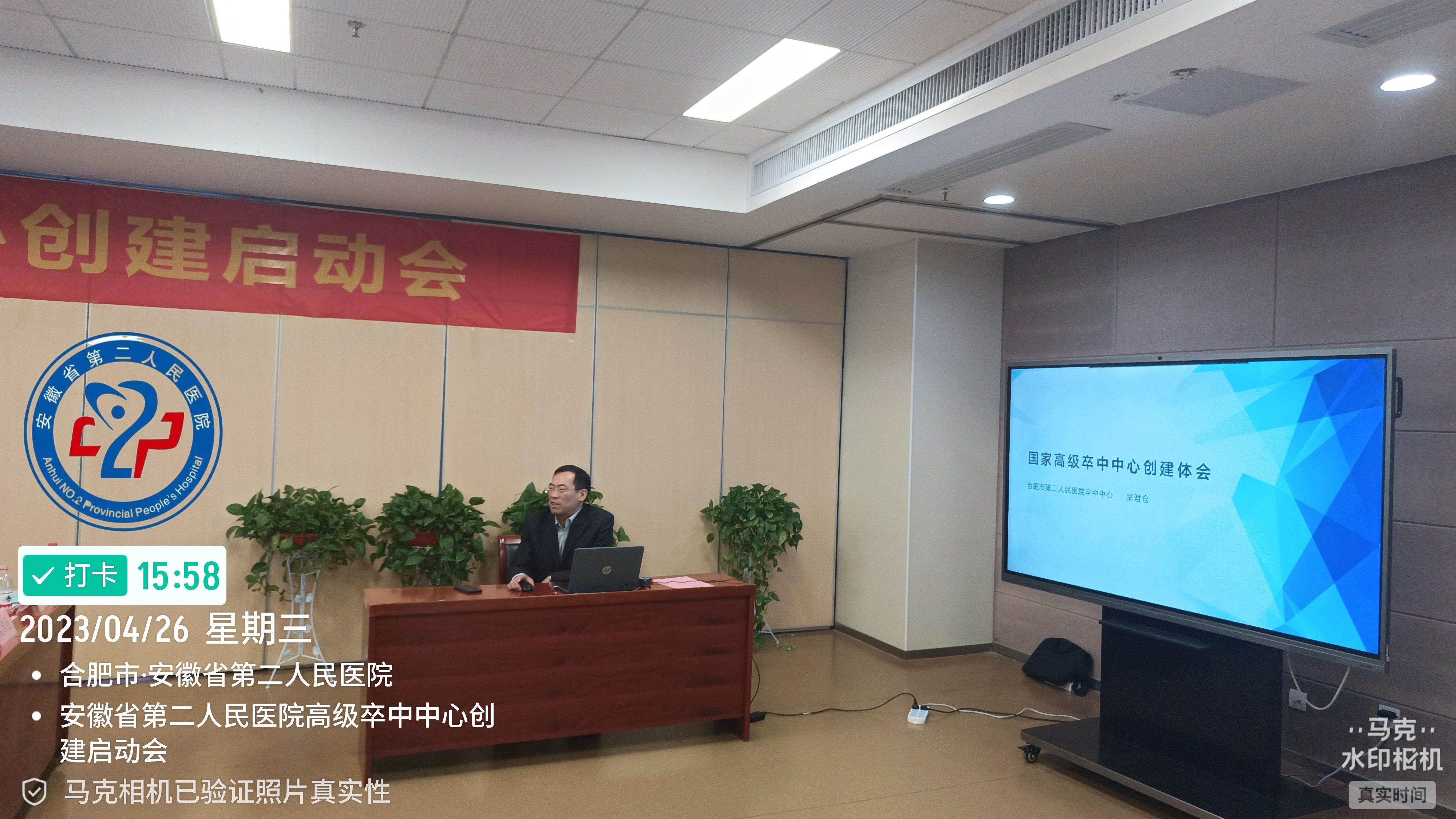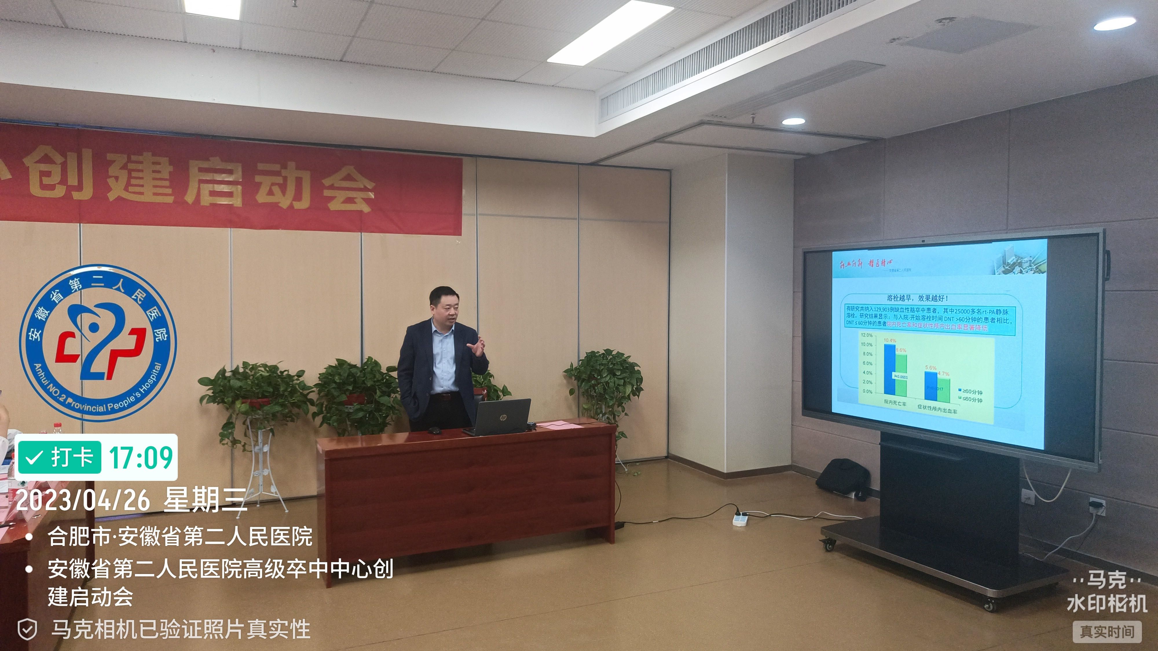 为进一步规范卒中患者的救治,推动建立多学科联合的卒中诊疗管理模式。医院高级卒中中心创建启动大会于2023年4月26日15:00在C楼五楼大会议室顺利召开,中国科学技术大学附属第一医院(安徽省立医院)南区副院长、安徽省卒中质控中心主任委员王锦权教授,合肥市第二人民医院副院长吴君仓教授,中国科学技术大学附属第一医院(安徽省立医院)高级卒中中心办公室主任姜柯等领导嘉宾出席大会,院党委副书记、院长吴文涌作总结讲话,会议由副院长周道平主持,部分临床医技科室主任、护士长和住院总及相关职能科室主要负责人参加会议。