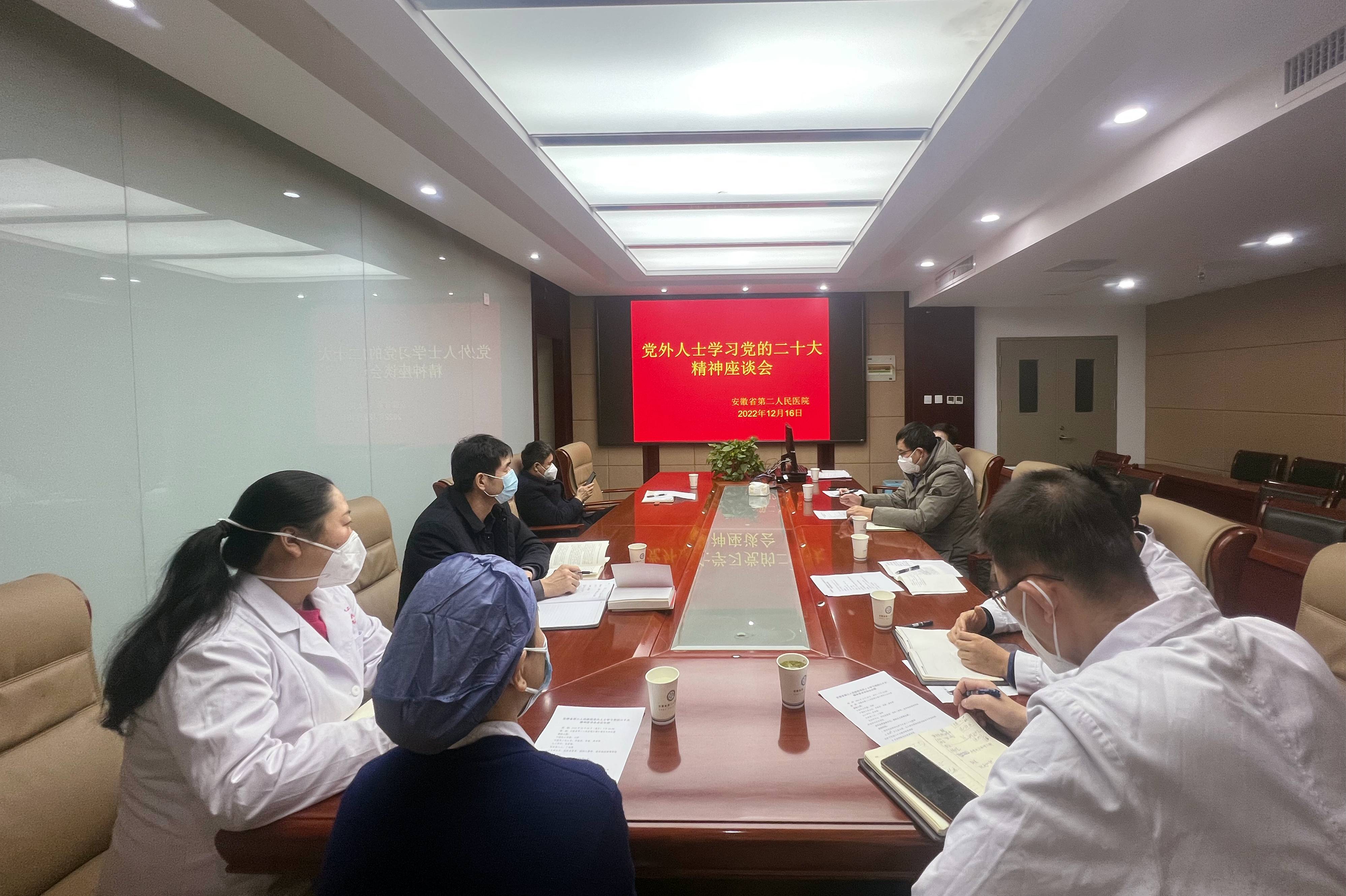 为认真贯彻落实党的二十大精神,充分听取党外人士意见建议,为医院高质量发展广泛凝聚力量,12月16日下午,医院在B楼6层东大会议室召开党外人士学习党的二十大精神座谈会。院党委副书记、副院长王延照出席会议并讲话,各民主党派、无党派人士代表、部分职能科室负责人参加会议。