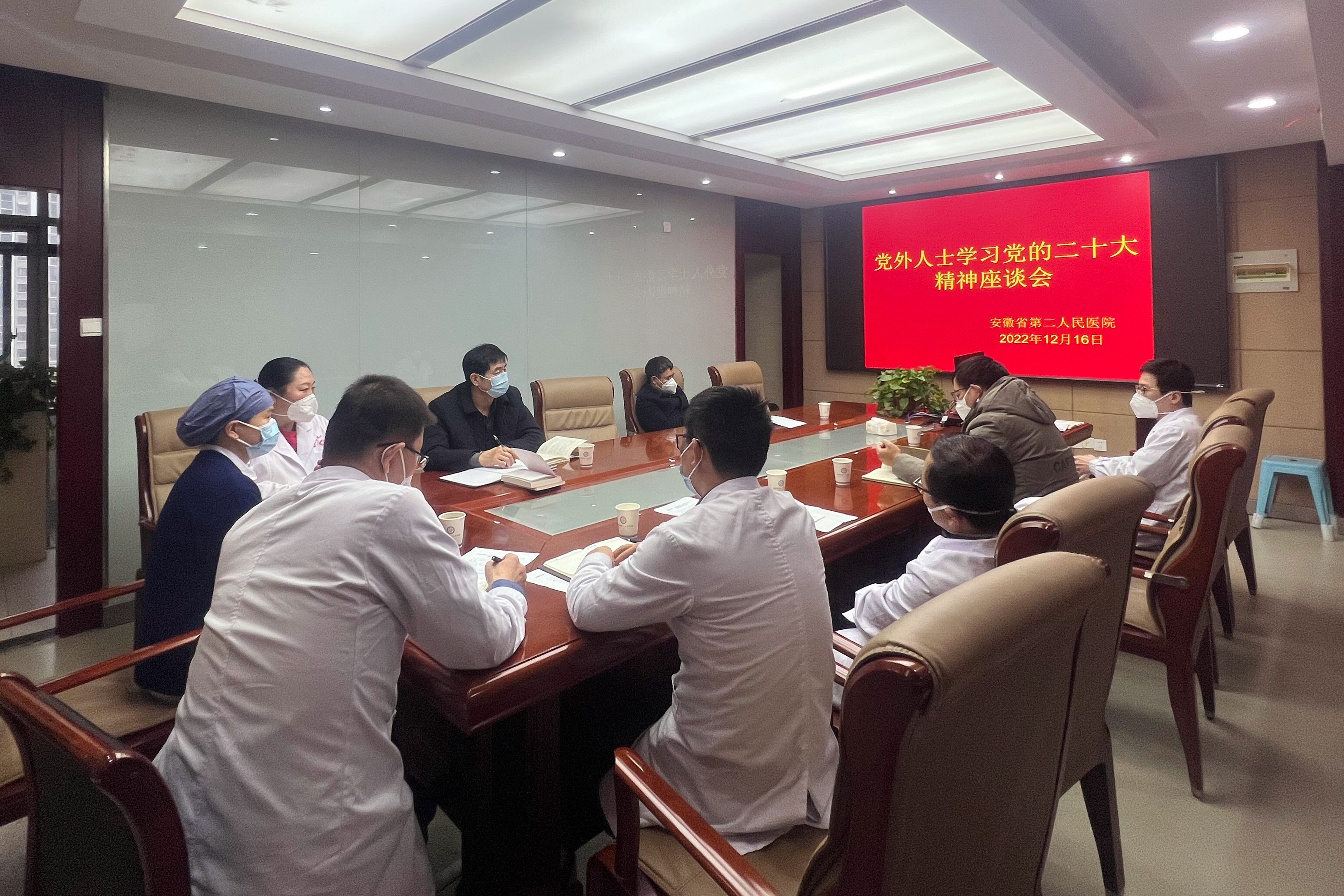 会议传达学习了中国共产党第二十次全国代表大会会议公报。随后,民盟、农工民主党、九三学社各党外人士及无党派人士结合学习党的二十大精神,立足岗位工作围绕人才培养引进、学科建设、科室管理与发展等方面提出意见建议,充分展现了党外人士心系医院发展、情系科室建设的格局和情怀。与会人员表示,将加强对党的二十大精神学习力度,不断提升自我,进一步规范诊疗行为,完善医疗工作环节,以扎实的工作作风共同助力医院高质量发展,持续推动党的二十大精神走深走实。