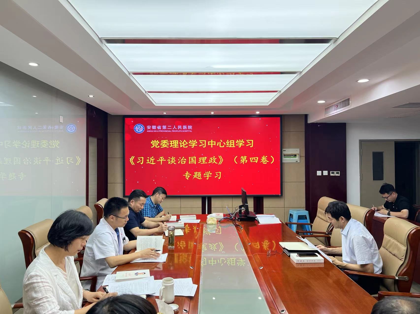 会议重温了习近平总书记视察安徽重要讲话指示精神,集体学习习近平总书记在省部级主要领导干部“学习习近平总书记重要讲话精神,迎接党的二十大”专题研讨班上的重要讲话精神、习近平总书记在中央统战工作会议上的重要讲话精神、7月28日中共中央政治局会议精神和郑栅洁书记在7月29日省委常委会扩大会议上的讲话精神。会议结合即将召开的医院党员领导班子民主生活会要求,传达学习了《党和国家机关党员领导干部民主生活会若干规定》及委党组巡察组印发的《巡察安徽省第二人民医院党委的反馈意见》。