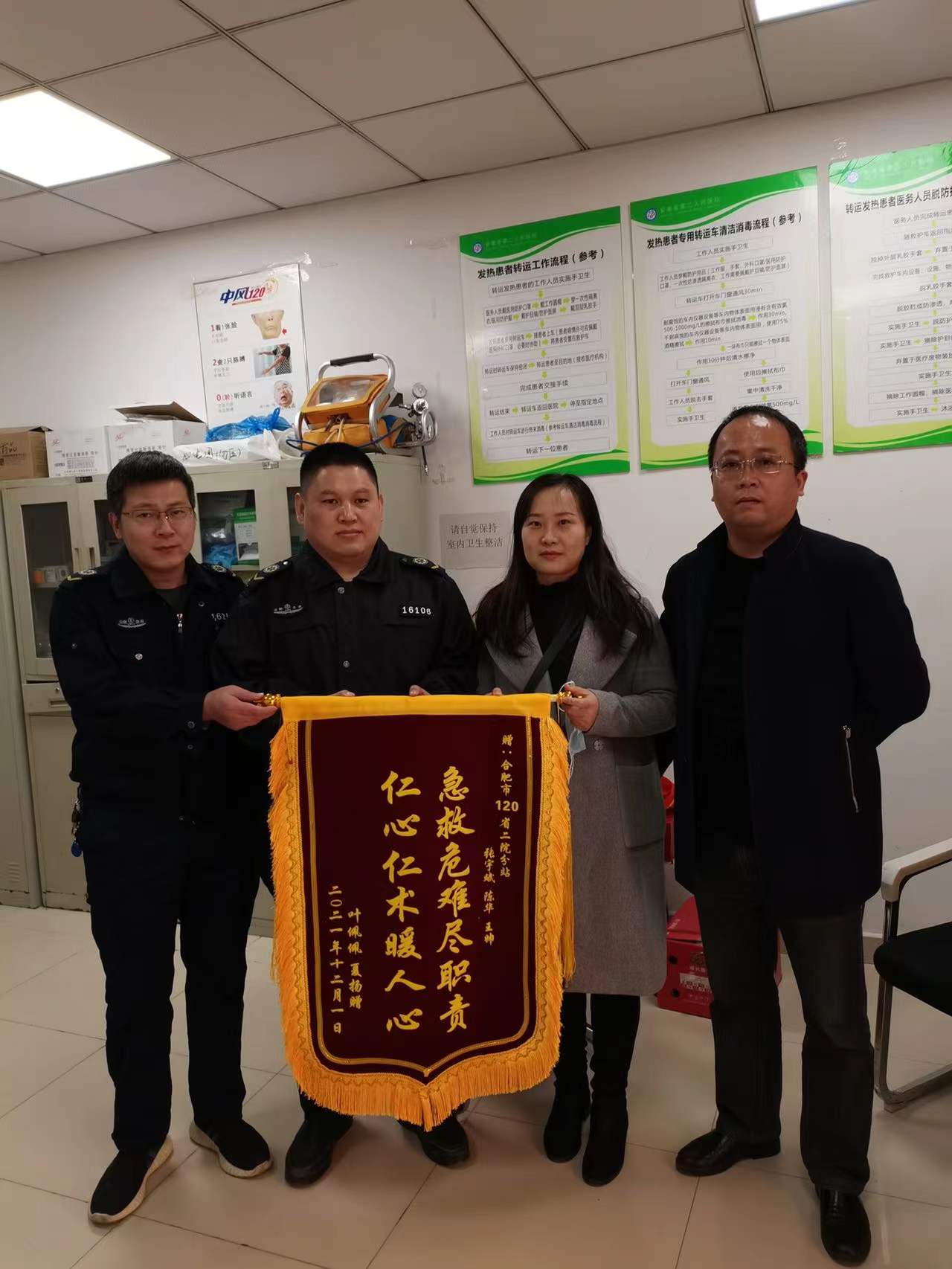 一面锦旗,既是一份荣誉,更是一份责任。它凝聚着患者对急救医务人员诚挚的谢意,体现着医生与患者良好的医患关系。省二院120急救分站的办公室里,新近又增添了一面锦旗,其锦旗背后的故事让我们无不为之感动。
