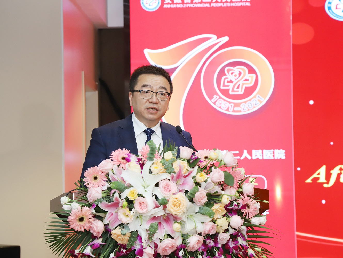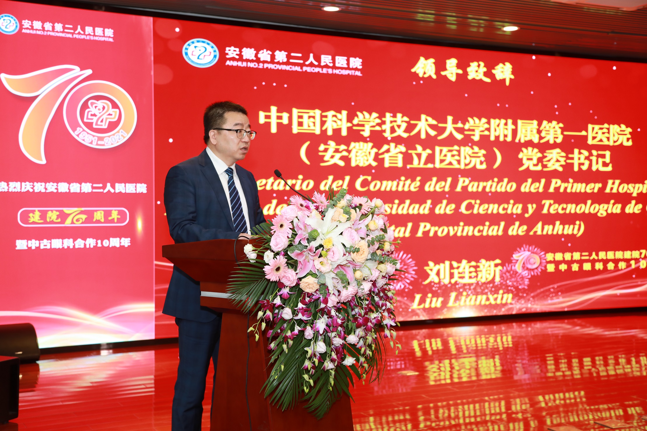 中科大附一院(安徽省立医院)党委书记刘连新作为兄弟医院代表向省二院表示祝贺。表示中科大附一院将始终保持与省二院的密切交流,共同分享新时代医疗领域在医疗技术、制度建设、人才培养等的优秀成果,始终以互帮互助为基石,充分利用两院各层级交往机制,持续完善合作平台,为新时代公立医院高质量发展共同奋斗。