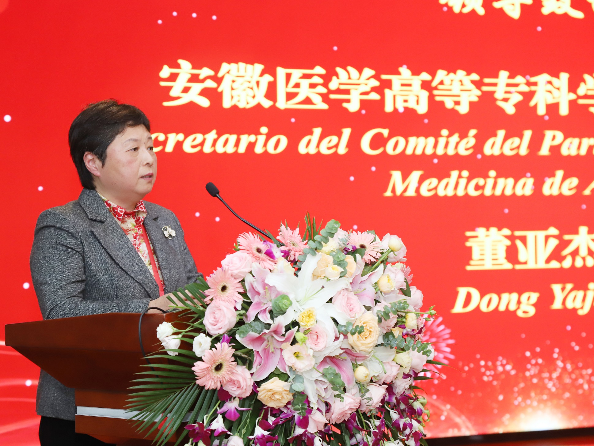 安徽医专党委书记董亚杰在致辞中对省二院表示祝贺。肯定了校院双方多年合作,希望校院双方进一步完善机制,深化校院合作,推动双方相互支持、相互渗透、优势互补,打造校院协同育人平台,从而提升临床教学、科研水平。