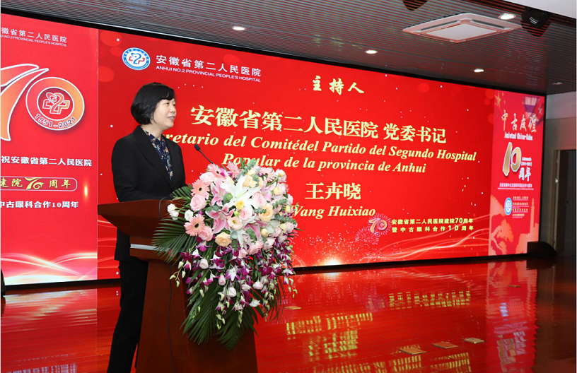 刘莉副主席充分肯定了省二院在建设健康安徽、服务人民健康工作中发挥的重要作用,高度赞扬了中古友谊眼科中心10年来取得的成绩,并对医院新一轮发展提出了要求,期望进一步深化安徽中古友谊眼科成果,加强中古在医疗、教育、科研等方面的交流与合作,为健康安徽、美好安徽建设作出应有的贡献。