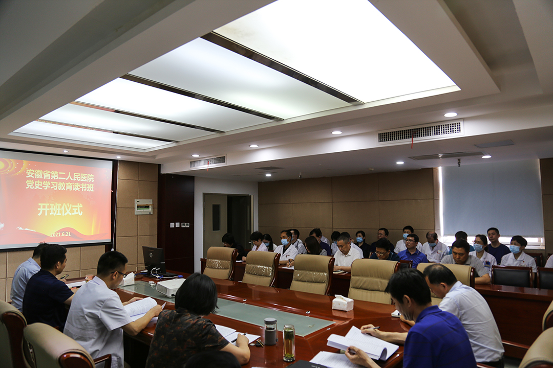 6月21日下午,安徽省第二人民医院举行了党史学习教育读书班开班式,党委书记王卉晓,党委副书记、院长吴文涌及院党委委员、党支部书记、相关职能科室负责人参加会议。