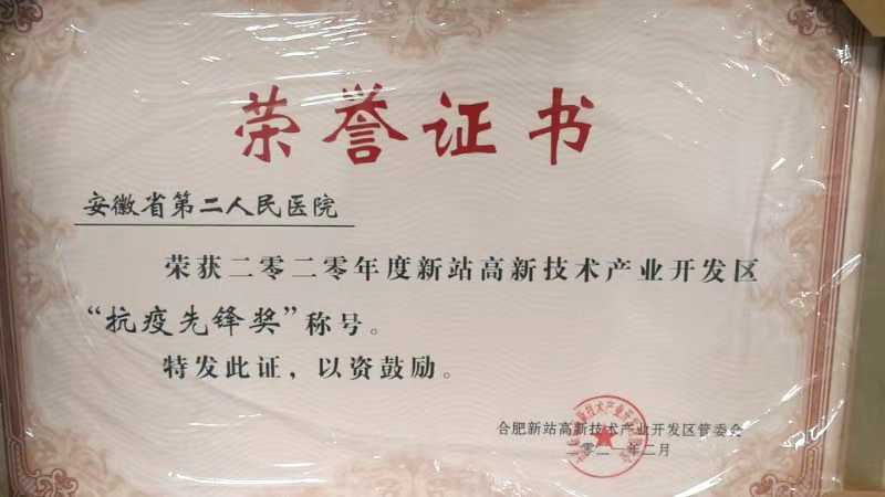 近期高新技术产业开发区授予我院“抗疫先锋奖”,以表彰抗疫以来的贡献。(文:宣传统战部/图:预防保健科)