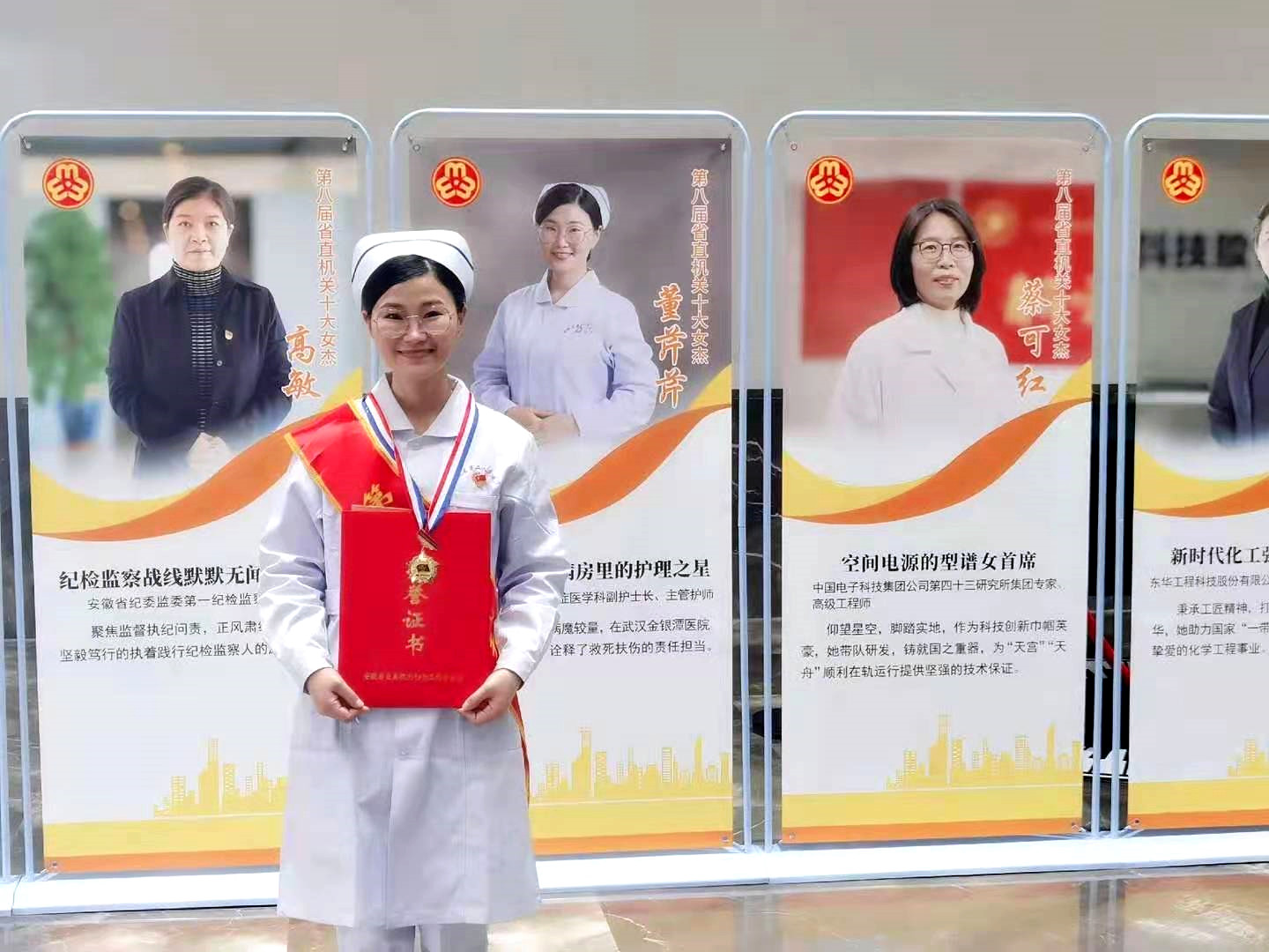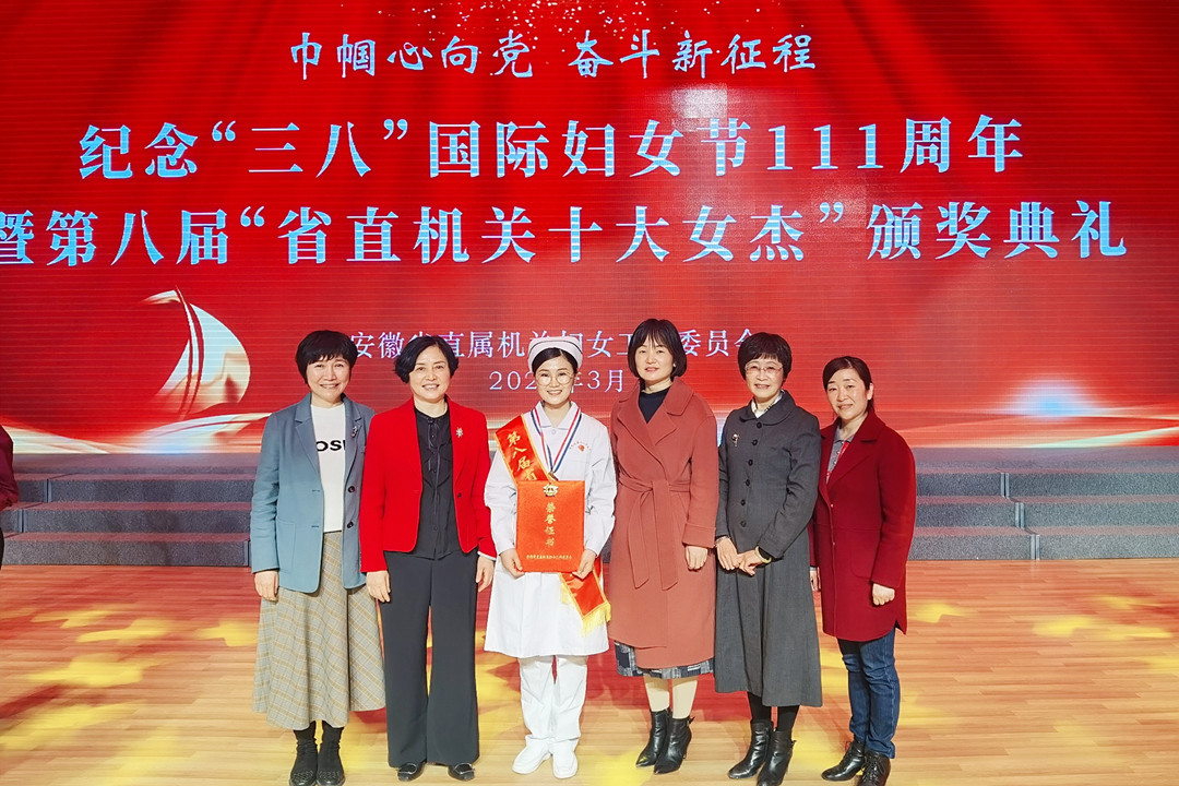 3月5日下午,纪念“三八”国际妇女节111周年暨第八届“省直机关十大女杰”颁奖典礼在安徽老年大学滨湖校区举行。我院重症医学科副护士长、安徽省援鄂医疗队队员董芹芹荣获第八届“省直机关十大女杰”称号。2020年初,新型冠状病毒感染的肺炎疫情爆发后,有着8年重症护理经验的董芹芹写下请战书。1月27日,她火速加入安徽省首批支援湖北医疗队,驰援武汉金银潭医院重症ICU,整整奋战两个多月,累计护理重症患者一百余例,最先出征,最晚归来!在援助武汉疫情工作的同时,董芹芹也通过每日录制音频、撰写日记的方式留下了在武汉工作的感悟。不仅增强了大众的防控意识,也为大家树立了战胜疫情的信心。作为重症病房的生命守护者,董芹芹以实际行动诠释了一名医务工作者健康所系,性命相托的誓言,在平凡的岗位上书写责任担当,贡献巾帼力量。曾荣获“安徽省向上向善好青年”、“合肥市三八红旗手”、安徽省“江淮护理之星”、安徽省卫健委委直机关“疫情防控优秀共产党员”等荣誉称号。(文/图:妇委会)