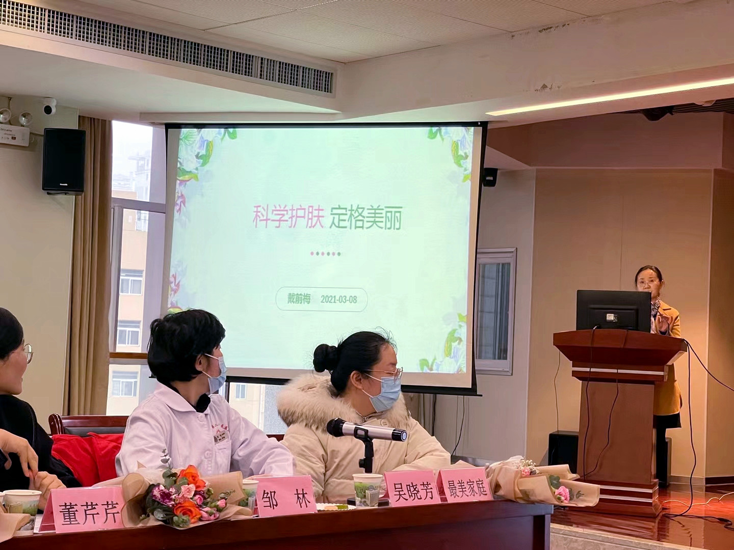 3月8日下午,医院在C楼5楼会议室举行“我和我的医院”女职工座谈会、“最美家庭”和“巾帼风采”展示活动以及科学护肤知识讲座,邀请最美家庭、巾帼文明岗及女职工先进人物、医药护技等临床一线科室女职工代表、女专家、女管理干部等共聚一堂,把“茶”言欢话今朝。院党委书记王卉晓、副院长周春、工会主席于琳娜、各妇女小组组长、妇委会委员等出席座谈会。