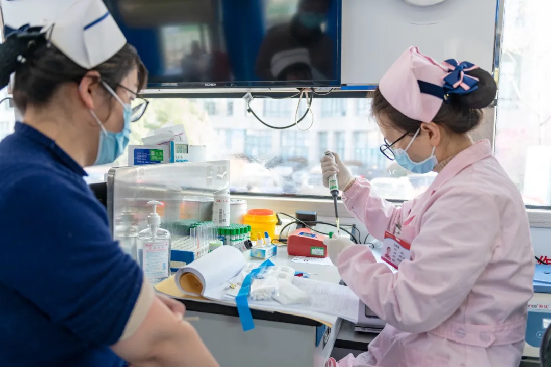 这个固定爱心献血点位于我院门诊大楼的左前方,每周四09:00—16:30为献血者服务。献血车外观设计简约大气,内部整洁明亮,征询体检区、初筛区、血液采集区、休息区等各个区域划分明确,沙发、空调、饮水机等设备一应俱全,环境温馨舒适。