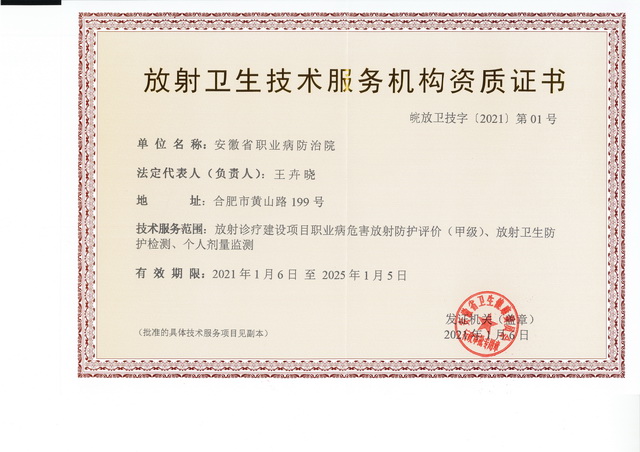 2021年1月6日省卫生健康委为我院颁发安徽省首家放射卫生技术服务机构甲级资质证书,此项工作填补了我省放射卫生甲级资质的空白,今后我省医疗机构新建的立体定向放射治疗装置、质子治疗装置、重离子治疗装置、中子治疗装置、正电子发射计算机断层显像装置(PET)等建设项目的放射防护评价工作摆脱了对外省放射卫生技术服务甲级机构的依赖,并将有力推动我省放射卫生工作高质量发展,更好提升全省放射卫生服务水平。同时向浙江、江苏、上海等周边省市看齐,更好融入长三角一体化发展。(图/文 放射卫生科)