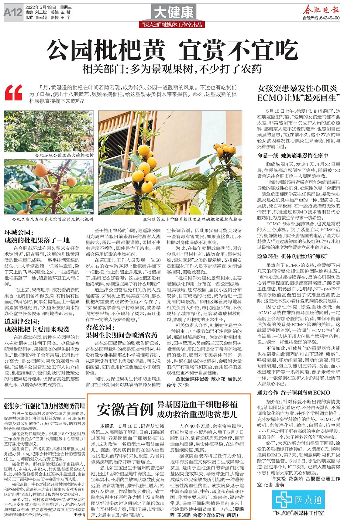 合肥晚报丨安徽首例异基因造血干细胞移植 成功救治重型地贫患儿