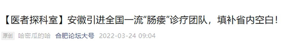 合肥论坛丨【医者探科室】安徽引进全国一流“肠瘘”诊疗团队,填补省内空白!