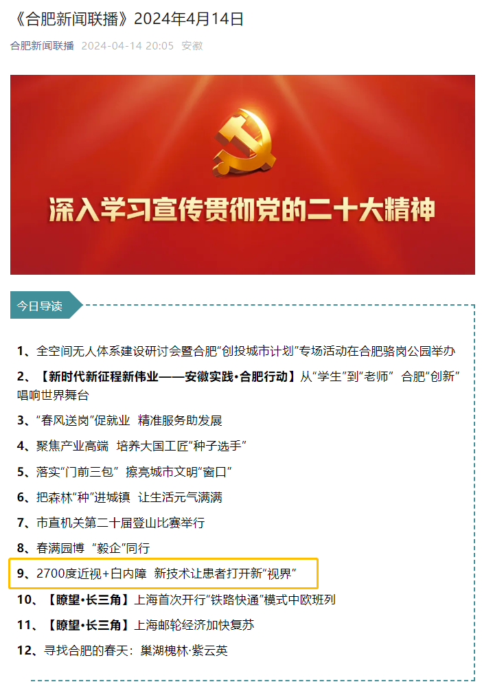 合肥新闻联播丨2700度近视+白内障 新技术让患者打开新“视界”
