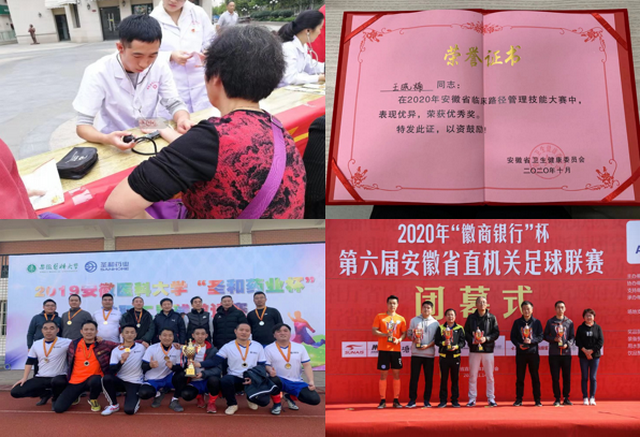 医疗质量安全是医院的生命线,王晓楠同志在工作中严格按照医院要求,发扬钉钉子精神,积极推进各项医疗质量管理工作,开展医疗质量月考核、每月临床路径统计与奖惩、每月归档病历及输血病历抽查、单病种质量管理与控制、不良事件统计等。荣获“2020年安徽省临床路径大赛优秀奖”,积极参加各项技能竞赛及医院组织的义诊、无偿献血、文体活动等,荣获“2020年安徽省临床路径大赛优秀奖”,“2020年省直机关足球联赛最佳团队奖”。