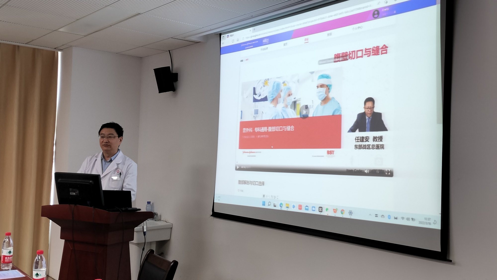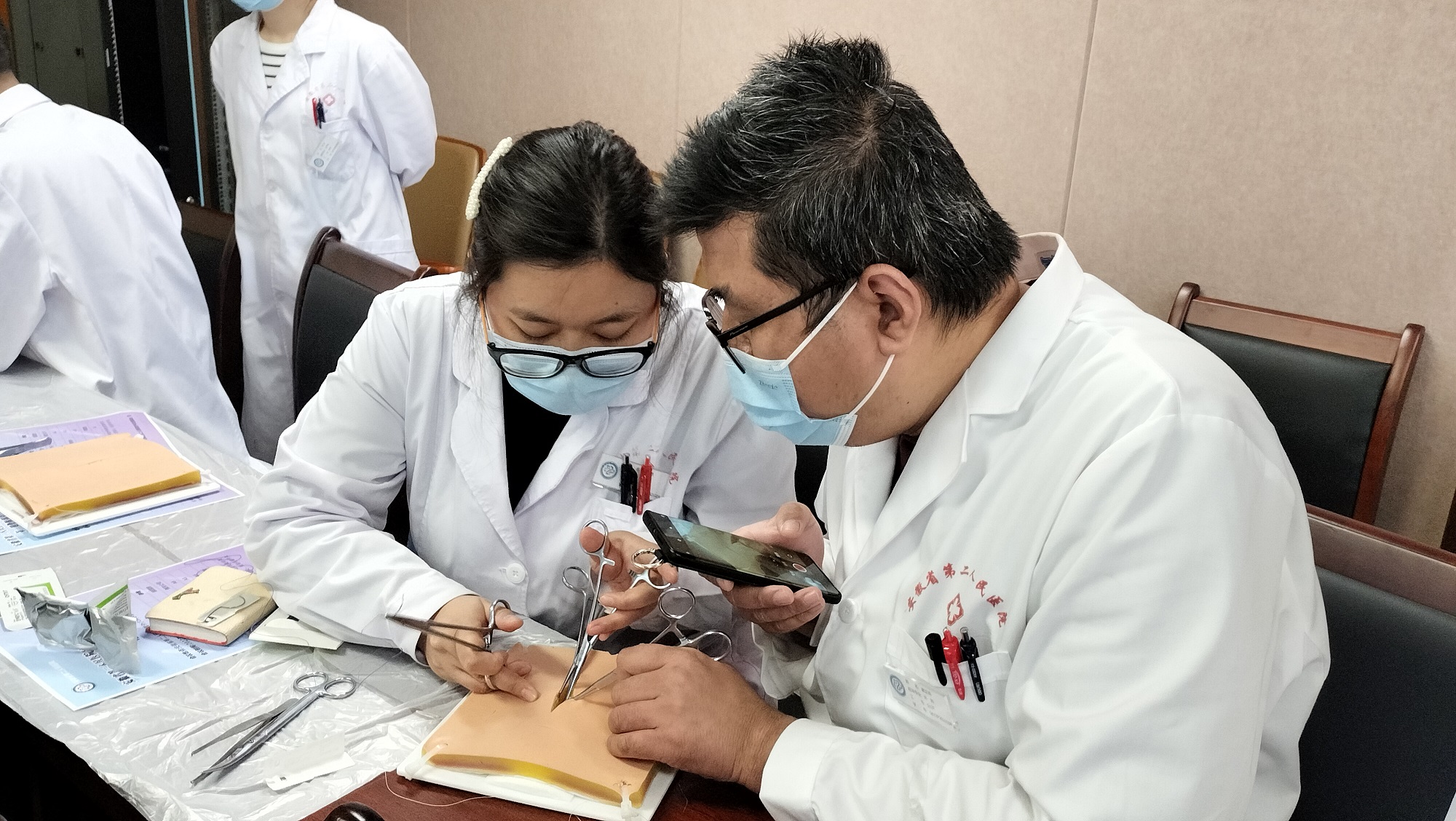 3月18日上午,由外科专业基地举办的手术缝合系列培训第一期“腹部切口与缝合”课程在C楼7层普外六科示教室进行。培训由外科专业基地主任、普外六科顾国胜主任主持。外科、妇产科、胸心外科、全科等专业住培医师参加了培训。
