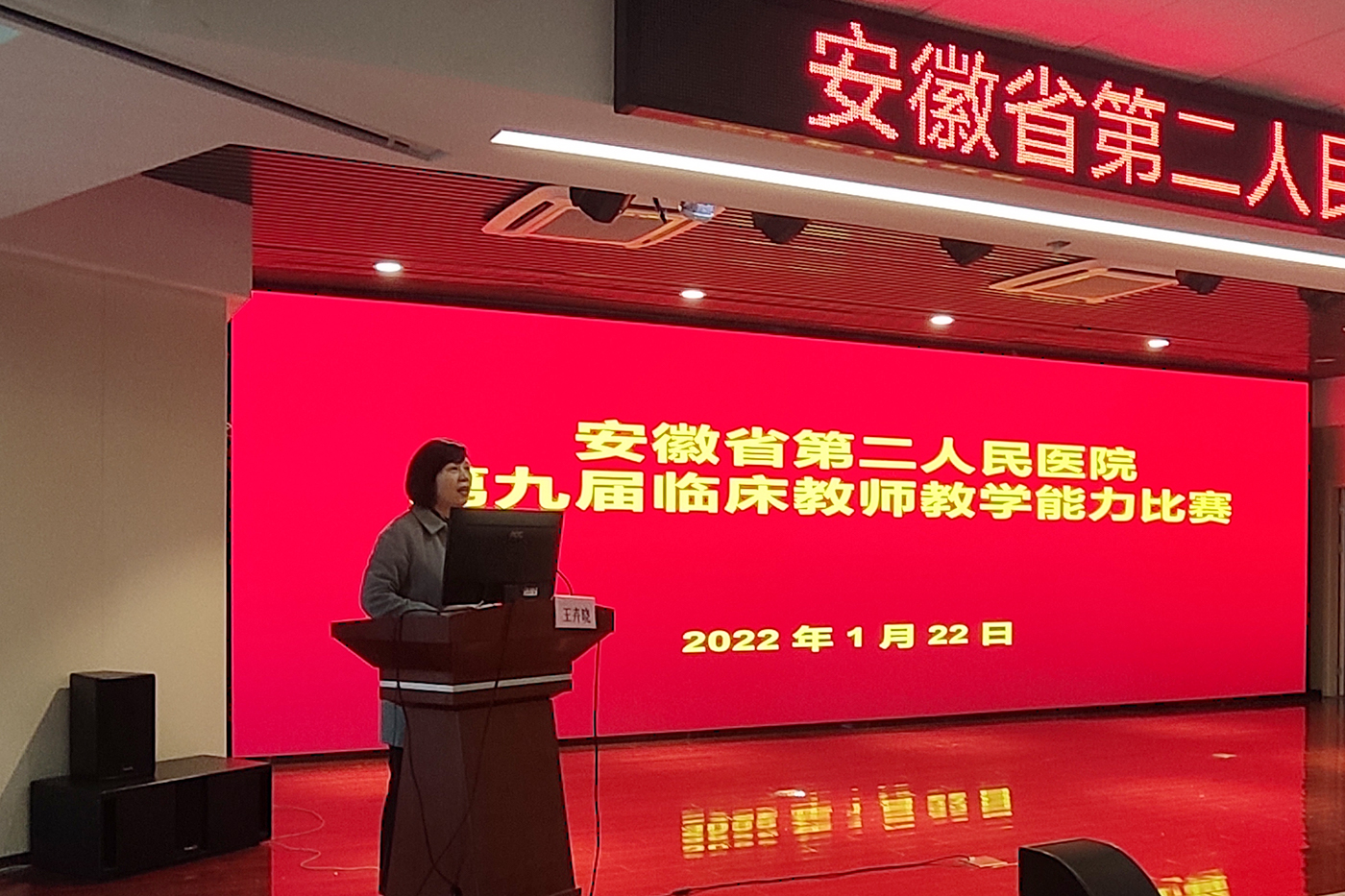1月22日,我院第九届临床教师教学能力比赛在C楼五楼大会议室成功举办。医院党委书记王卉晓出席讲话并担任比赛评委,比赛邀请了安徽医科大学、安徽医科大学第一附属医院、安徽医学高等专科学校的教学资历深、比赛经验丰富的专家及医院教研室主任、住培督导专家进行评审,临床教师、教学秘书和住培学员观摩了比赛。比赛由院长助理、教育处主任邢桂枚主持。