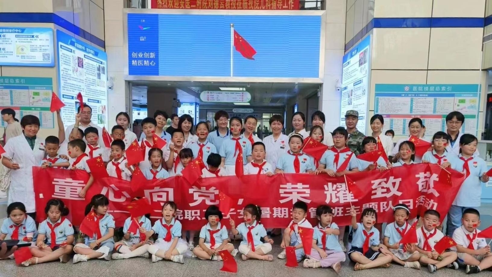 为热烈庆祝第96个“八一”建军节的到来,同时加强青少年爱国主义教育,继承和发扬解放军的光荣传统和优良作风,明白当今幸福生活来之不易,激发爱国情怀,医院团委联合院工会,为医院职工子女暑期托管班的小朋友们举办“童心向党 荣耀致敬”建军节主题队日活动。