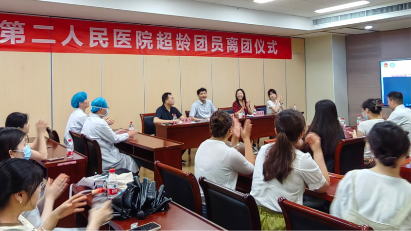 为团结和凝聚青年团员力量,发挥青年生力军作用,提高全体团员的荣誉感、归属感,安徽省第二人民医院团委于2023年7月28日下午在C楼5层隔间会议室举办超龄团员离团仪式暨主题团课活动。院党委副书记、副院长王延照、团委书记欧云清、团委副书记叶腾飞、各团支部书记、离团青年代表共40余人出席仪式。