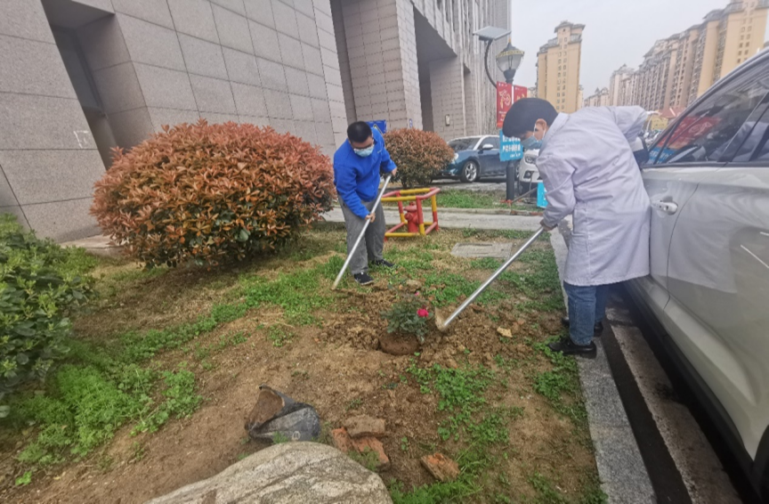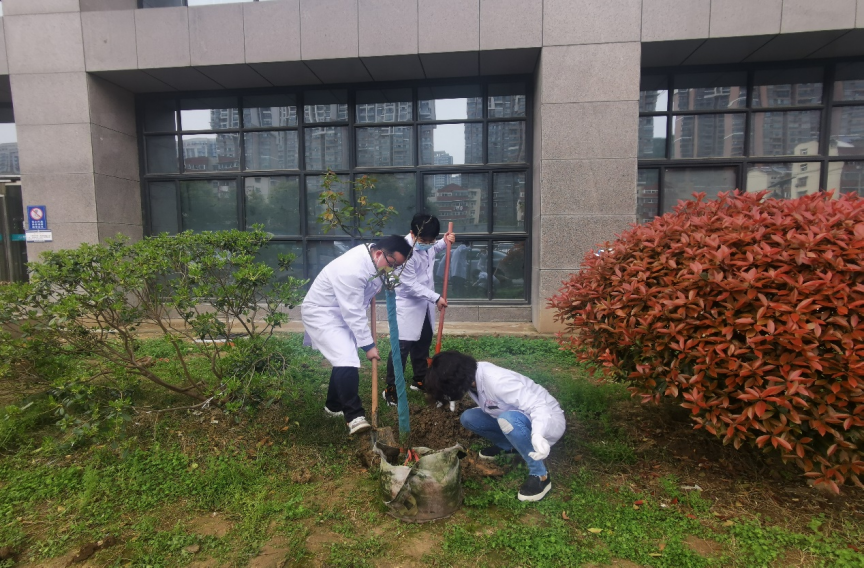 3月23日(周六)上午,教育科研党支部全体党员在支部书记邢桂枚的带领下前往医院C楼北面“娇艳苑”(教育处科研处花园)开展 “植树种花”主题党日活动。