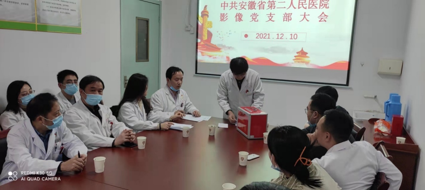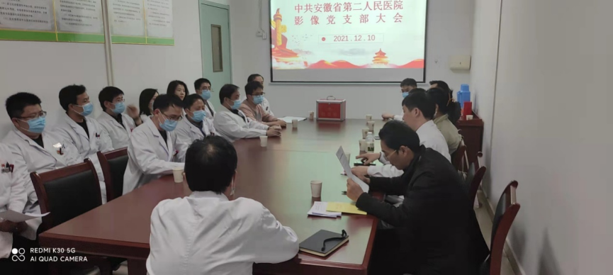 2021年12月10日下午4点50分在放射科示教室成功召开了影像党支部第一次党员大会。会议由影像党支部召集人杜训松主持,上届党支部书记侯庆兵作述职报告,院党委委员吴怀国同志到会并讲话。