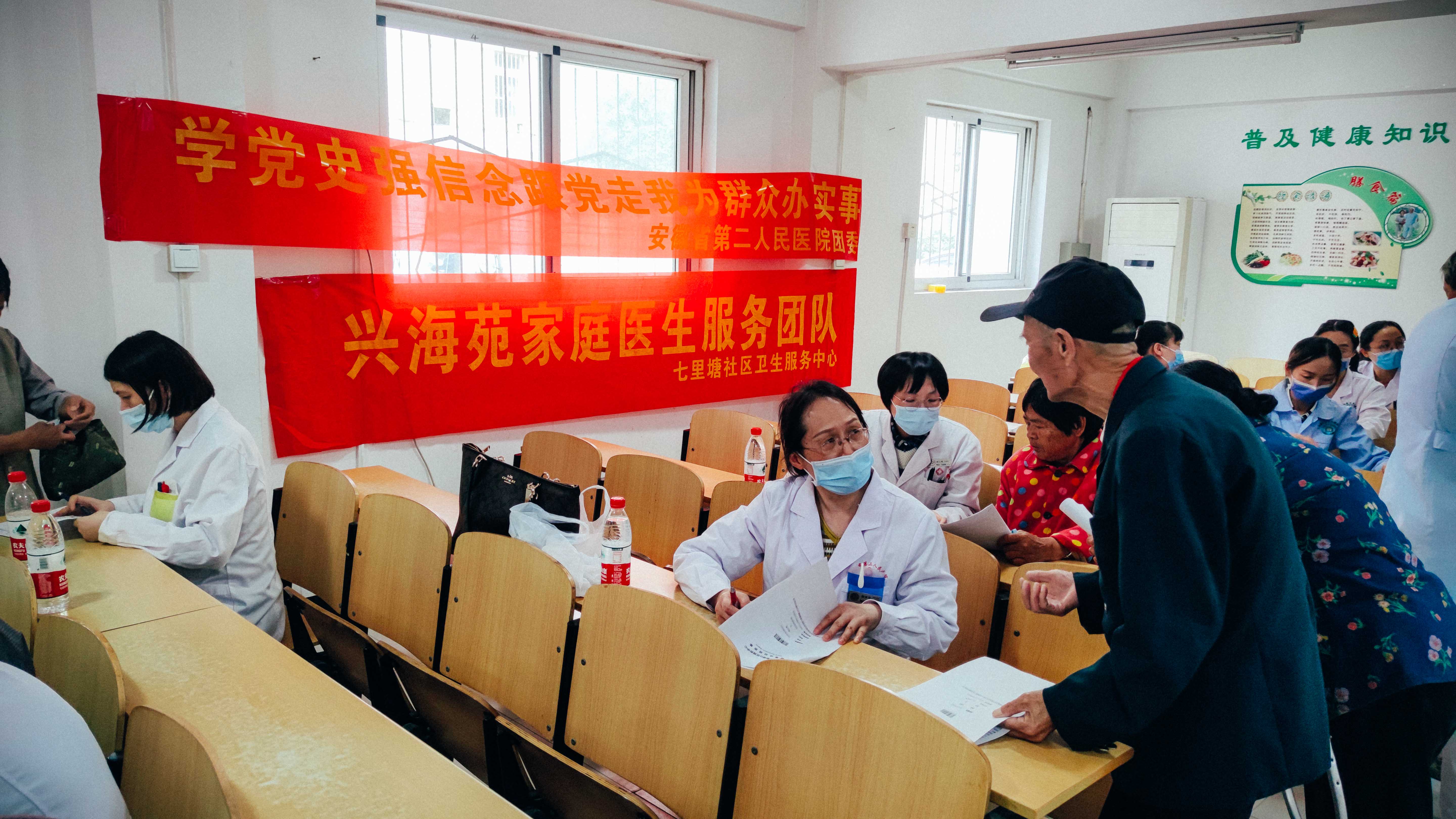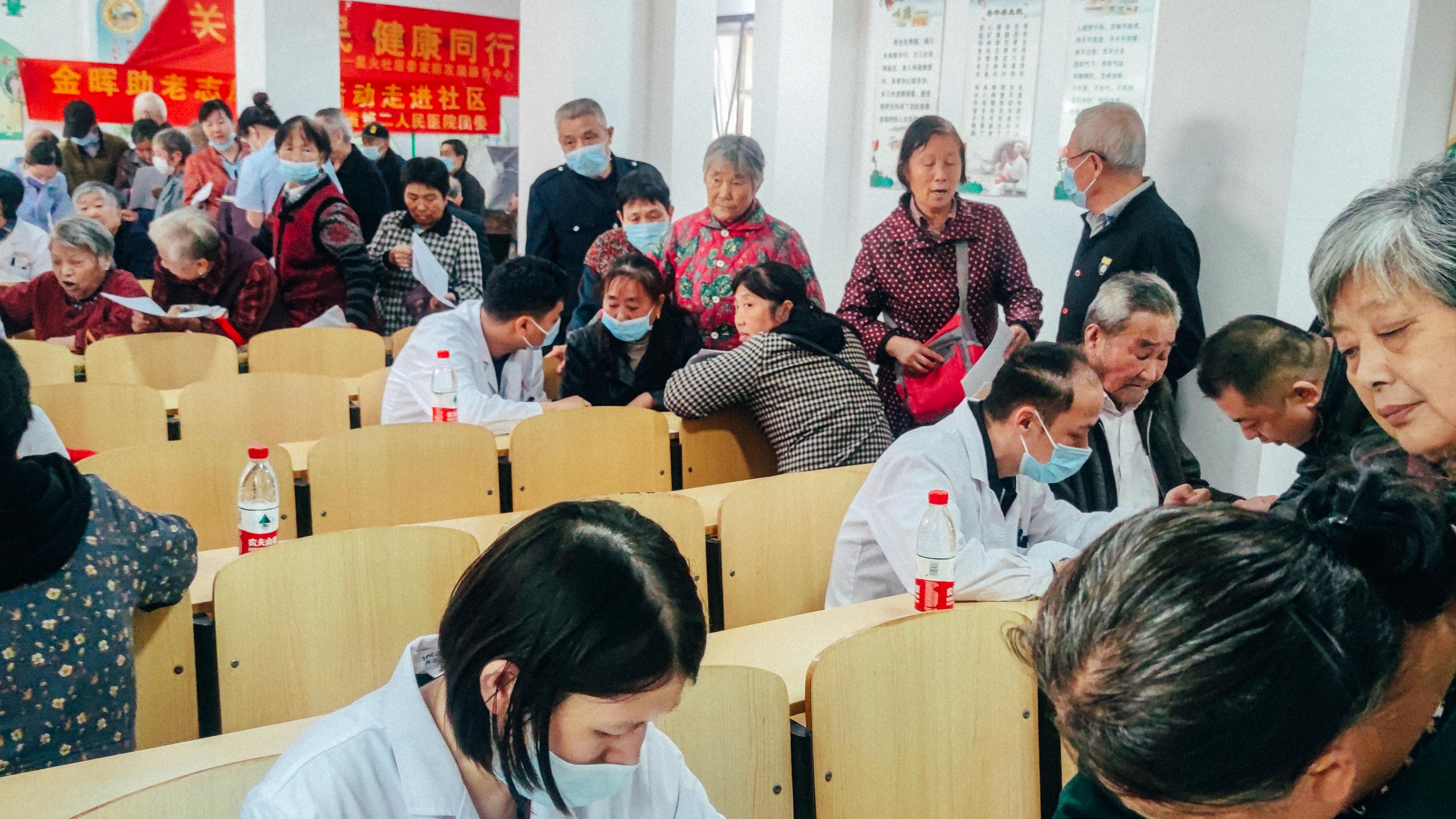 为进一步弘扬中华民族孝老爱亲传统美德,营造养老孝老敬老社会氛围,不断增强老年人的获得感、成就感和幸福感,以“敬老月”为契机,安徽省第二人民医院团委于2021年10月11日组织青年志愿者走进七里塘社区开展金晖助老志愿服务主题活动。当今社会发展迅速,越来越多的老年人开始关注自己的健康,每年老年人体检人数在不断增多,但是体检完拿到体检报告,很多老年人不是很明白报告项目的一些含义,为了帮助老年人了解体检的指标意义,清楚的掌握自己的健康状态,当天下午医院8名青年志愿者进入兴海苑一期老年活动中心提供报告项目解读服务,当青年志愿者赶到活动地点时,闻讯而来的群众早早的就来到活动现场等候,秩序井然。