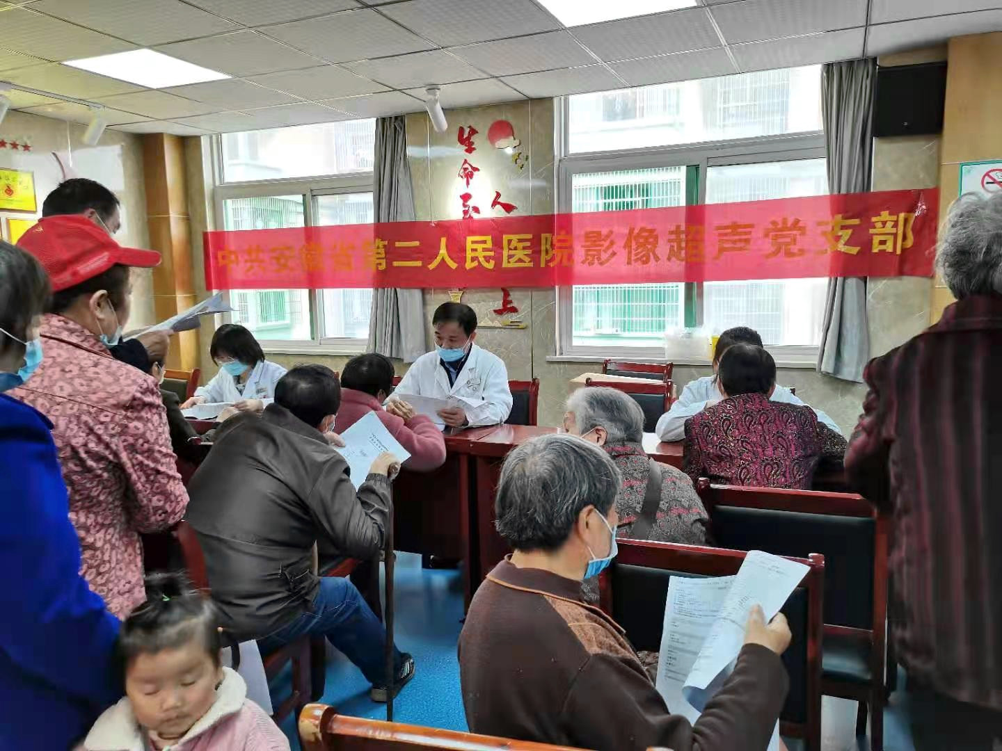 影像超声党支部书记侯庆兵、宣传委员裴仁明及5名党员同志参加了此次义诊活动。