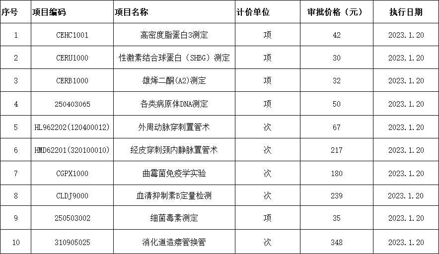 安徽省第二人民医院2023年度第一批试行价格项目公示表