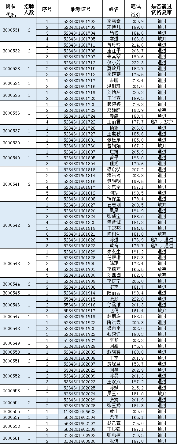 根据《关于印发2021年度安徽省省直事业单位公开招聘人员实施方案的通知》(皖人社秘〔2021〕103号)规定和相关要求,安徽省第二人民医院对招聘岗位入围参加专业测试的人员进行了资格复审。经审核,62名考生资格复审合格,具体名单如下: