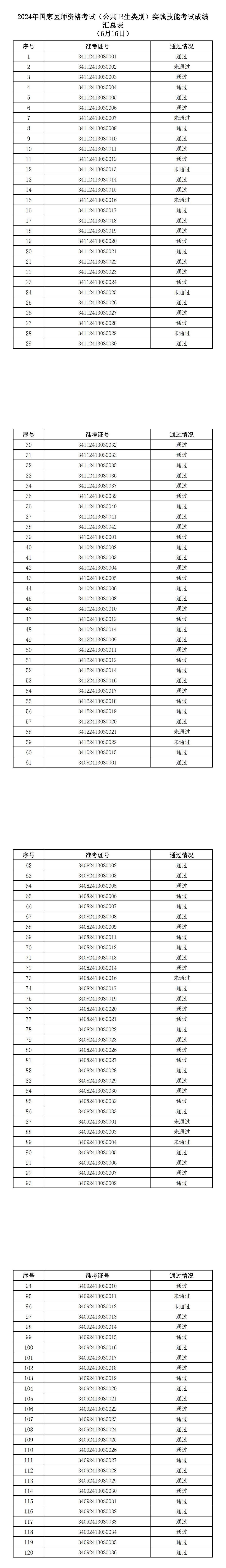 2024年国家医师资格考试(公共卫生类别)实践技能考试(6月16日)成绩公示