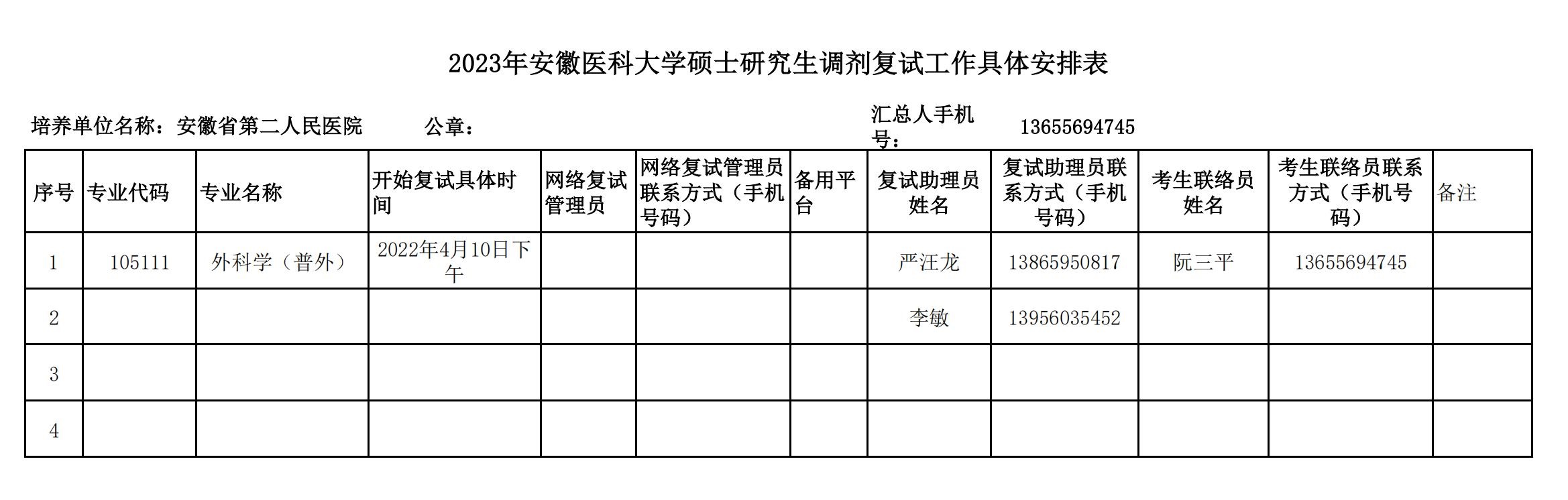 2023年安徽医科大学硕士研究生调剂复试工作具体安排表