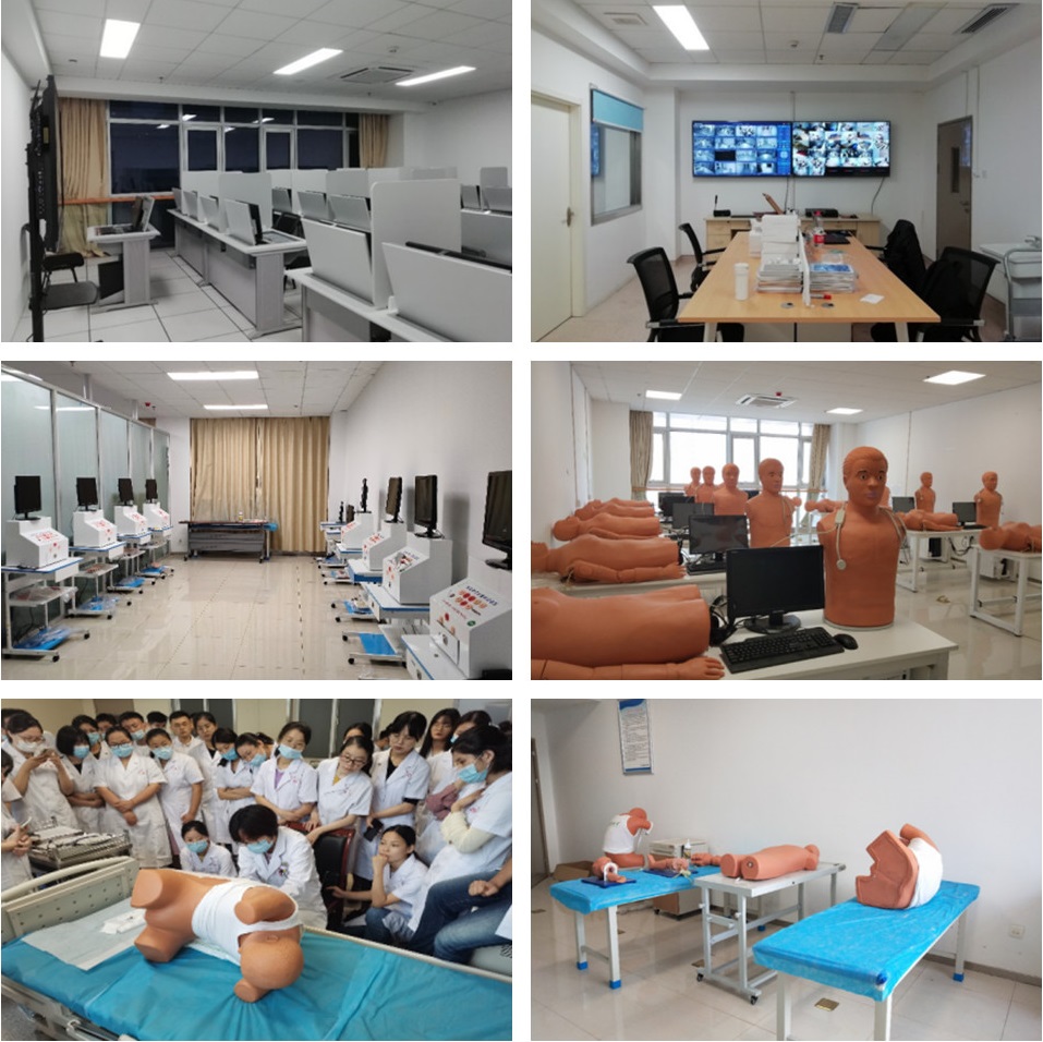 医院临床技能培训中心位于医院医疗业务大楼C楼5、6层,培训用房达5000余平方米。其中5层为考试考核区域,设有OSCE考站、PBL讨论室、多媒体教室、人机对话室、SP准备室、中控室、阅卷室、教师休息室等,充分满足住院医生临床能力的阶段性考核、结业考核和三基考试等需求;6层为各专项技能培训室(包含模拟心肺听诊、急诊急救及内外妇产儿五官综合训练室、中医技能训练室等)及虚拟培训区域(包含模拟ICU、模拟手术室、模拟产房、模拟门诊及腔镜室等),同时具备提升专科医生实操能力的各种模拟训练设施。