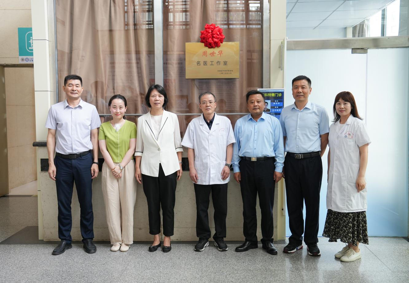 6月25日上午,运动医学专家周世华名医工作室落户省二院。省卫健委党组成员、省中医药管理局党组书记、局长王卉晓,医院党委书记丁文荣共同为工作室揭牌,省中医药管理局科技教育处处长张金国,医院党委副书记、副院长王延照出席揭牌仪式。