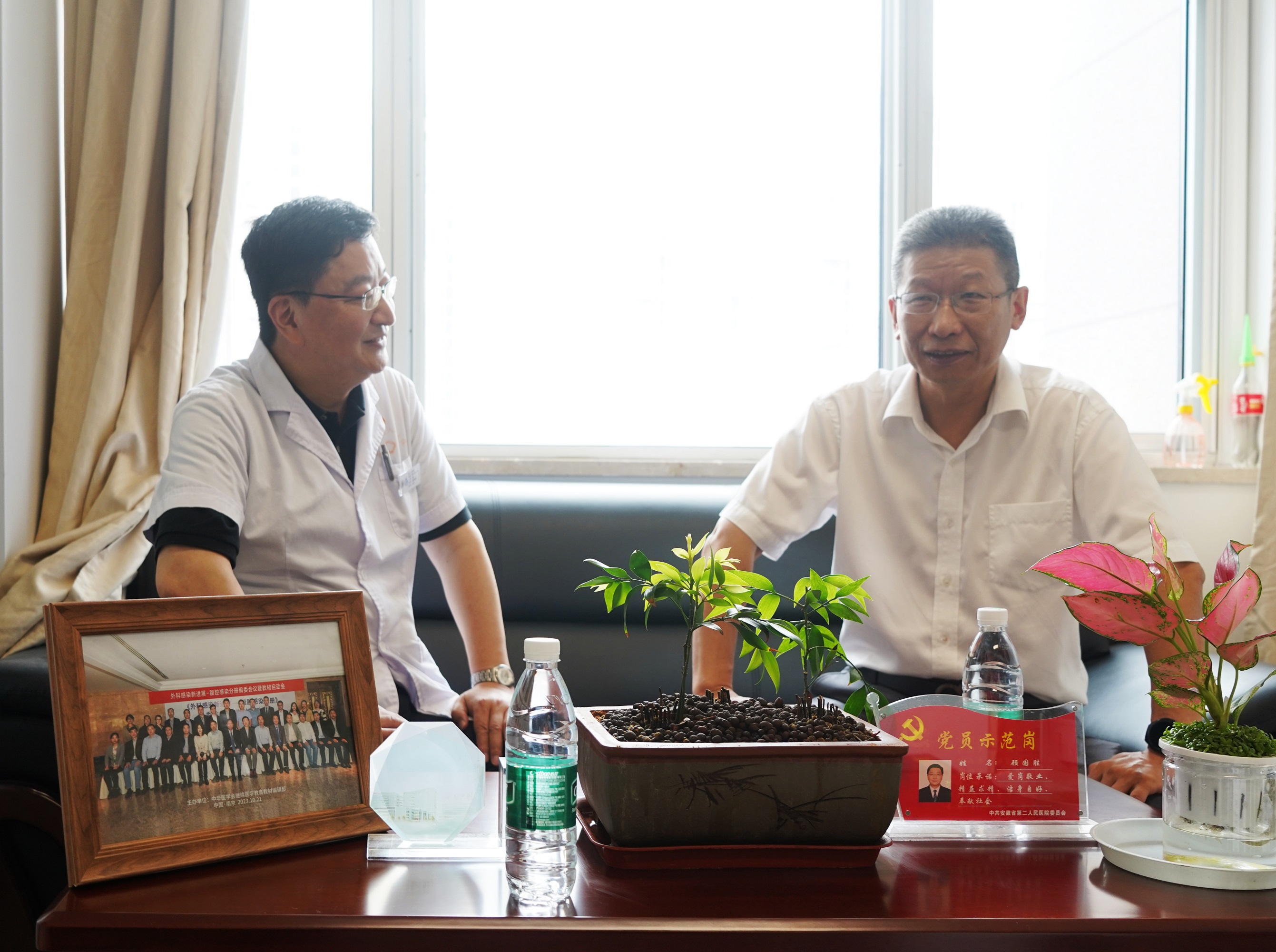 9月28日,国庆、中秋双节前夕,安徽第二医学院党委书记姚文兵一行来院走访慰问知名专家,向他们致以节日的诚挚问候和美好祝福。医院党委书记丁文荣,党委委员、副院长周道平陪同慰问。